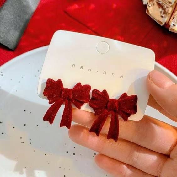 ناموجودگوشواره یلدایی طرح پاپیون نگینی مخمل رنگ ثابت
