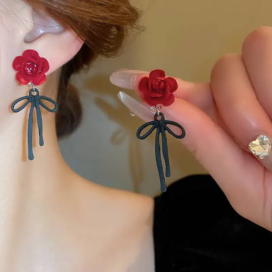 ناموجودگوشواره یلدایی طرح گل رز رنگ ثابت ضدحساسیت