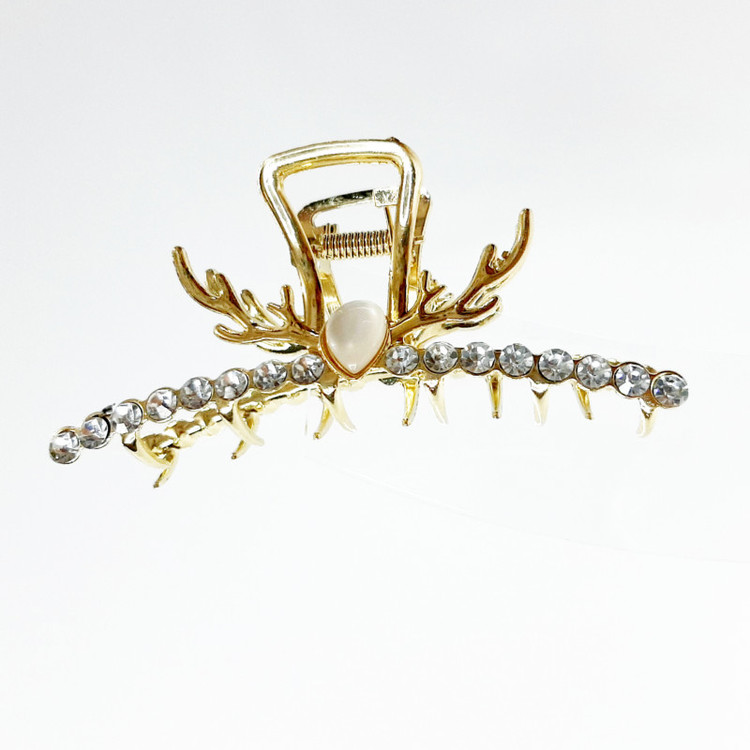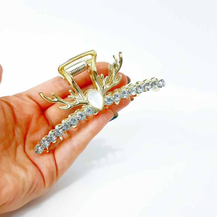 کلیپس مو زنانه مدل فلزی نگین دار طرح شاخ گوزن