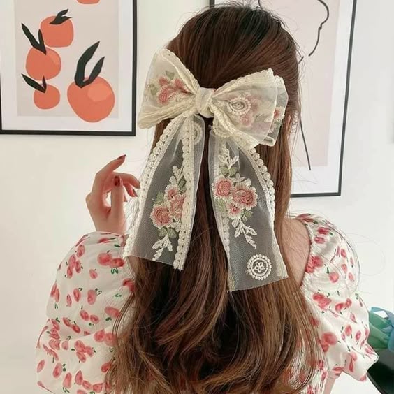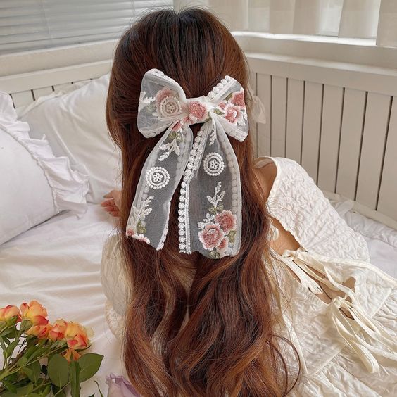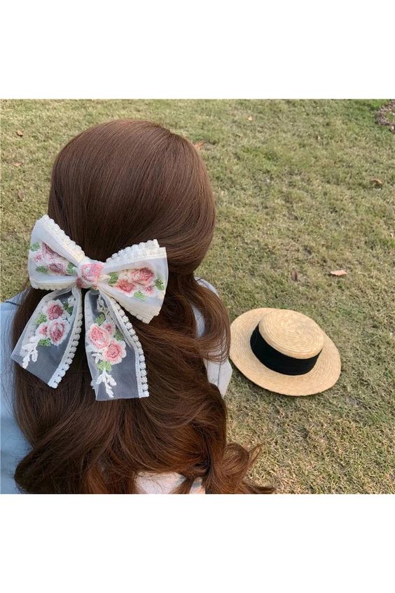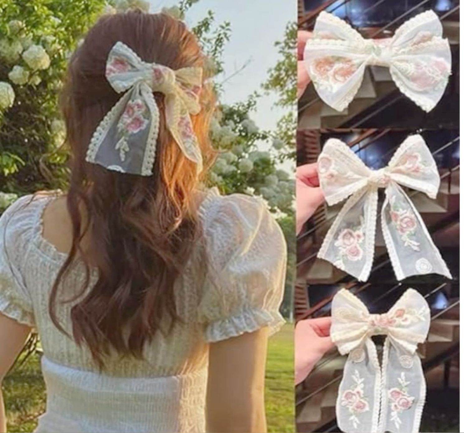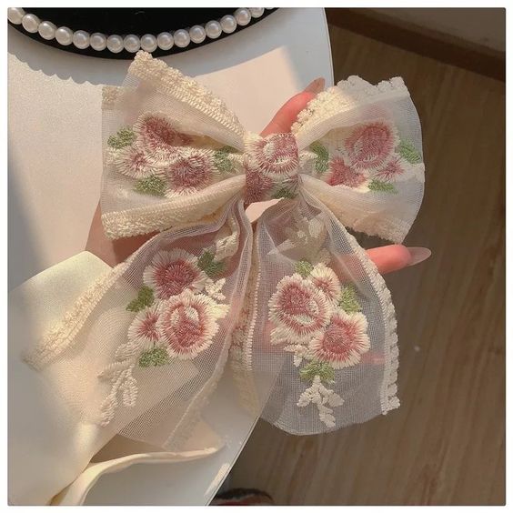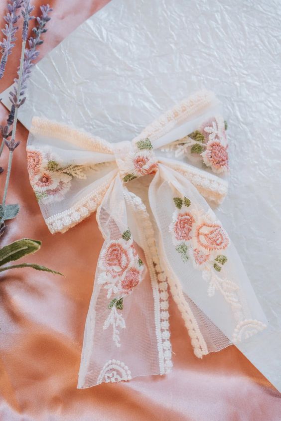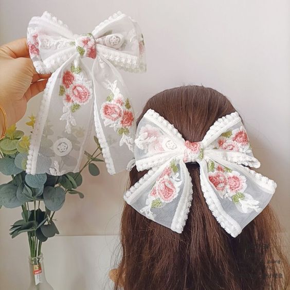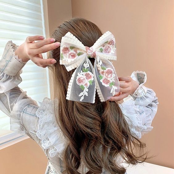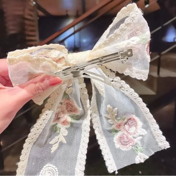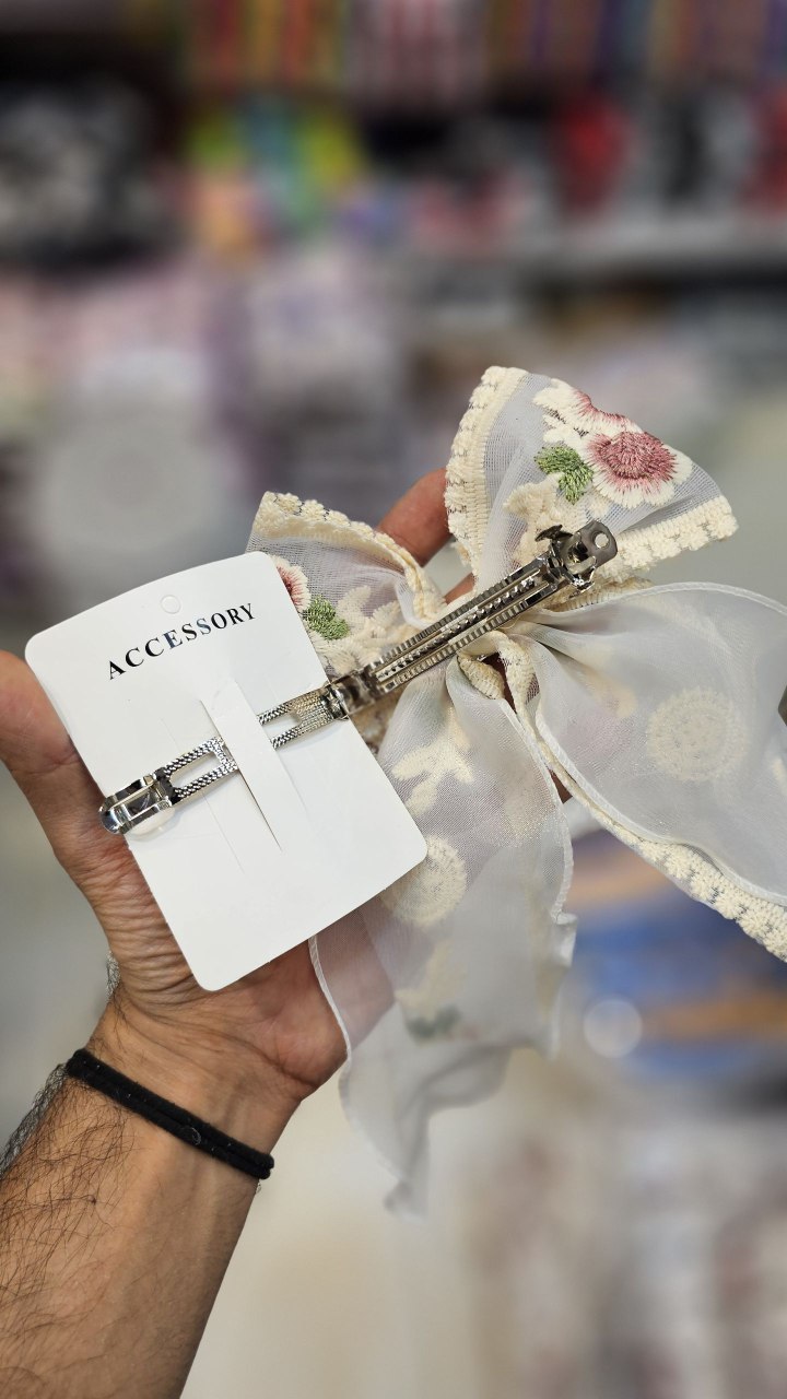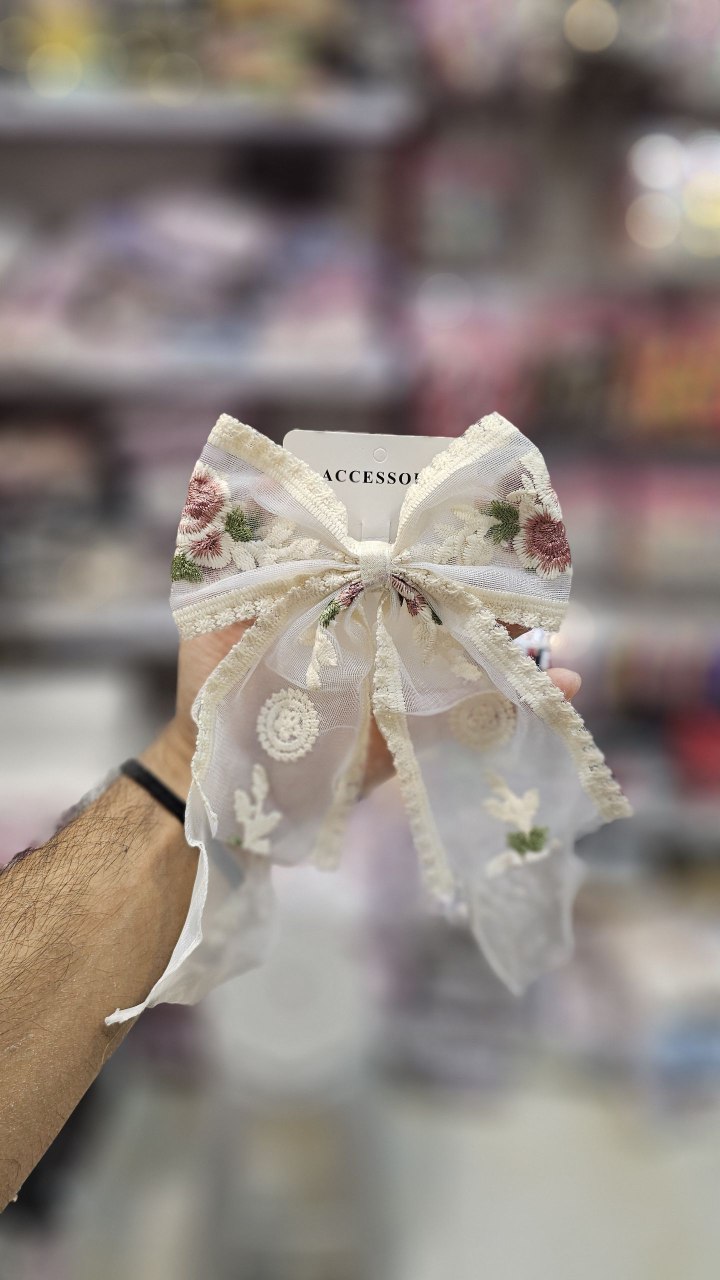 گیره مو پاپیون حریر گلدوزی شده یکی از جذاب ترین اکسسوری های زنانه است.