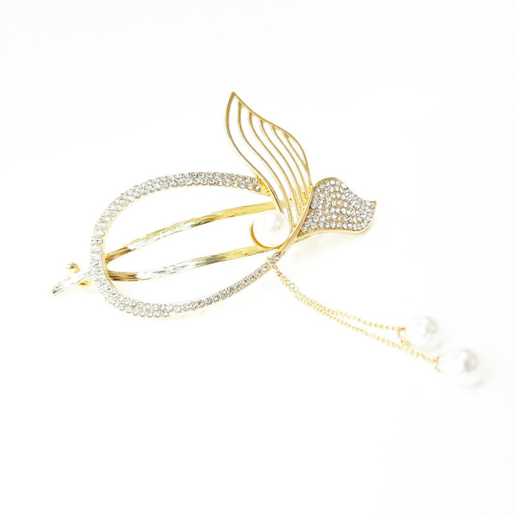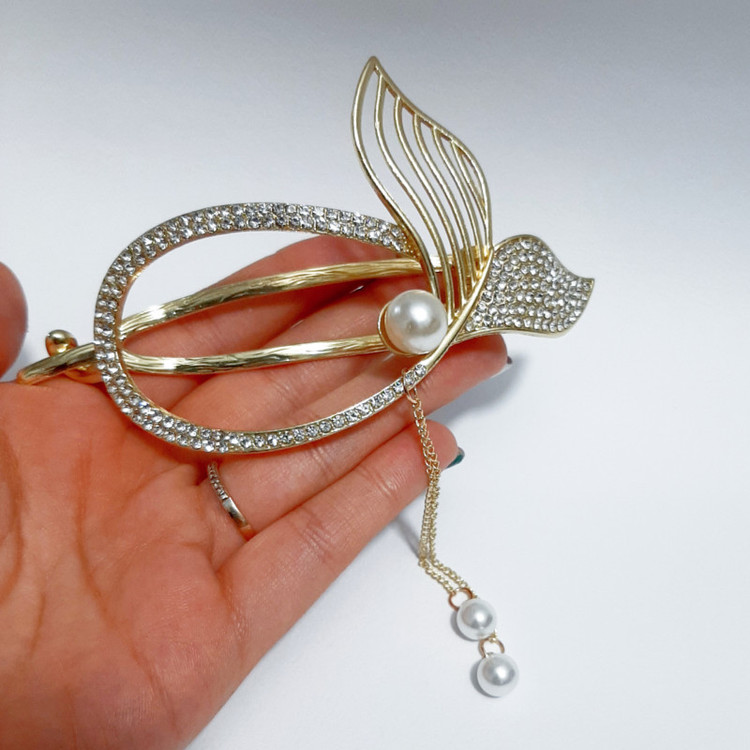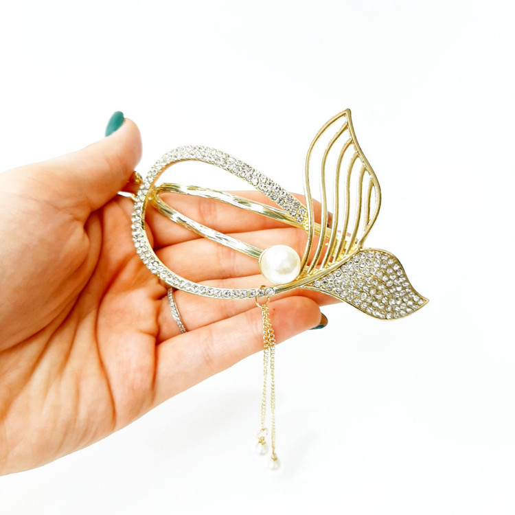گیره مو زنانه مدل آبشاری طرح دریایی نگینی