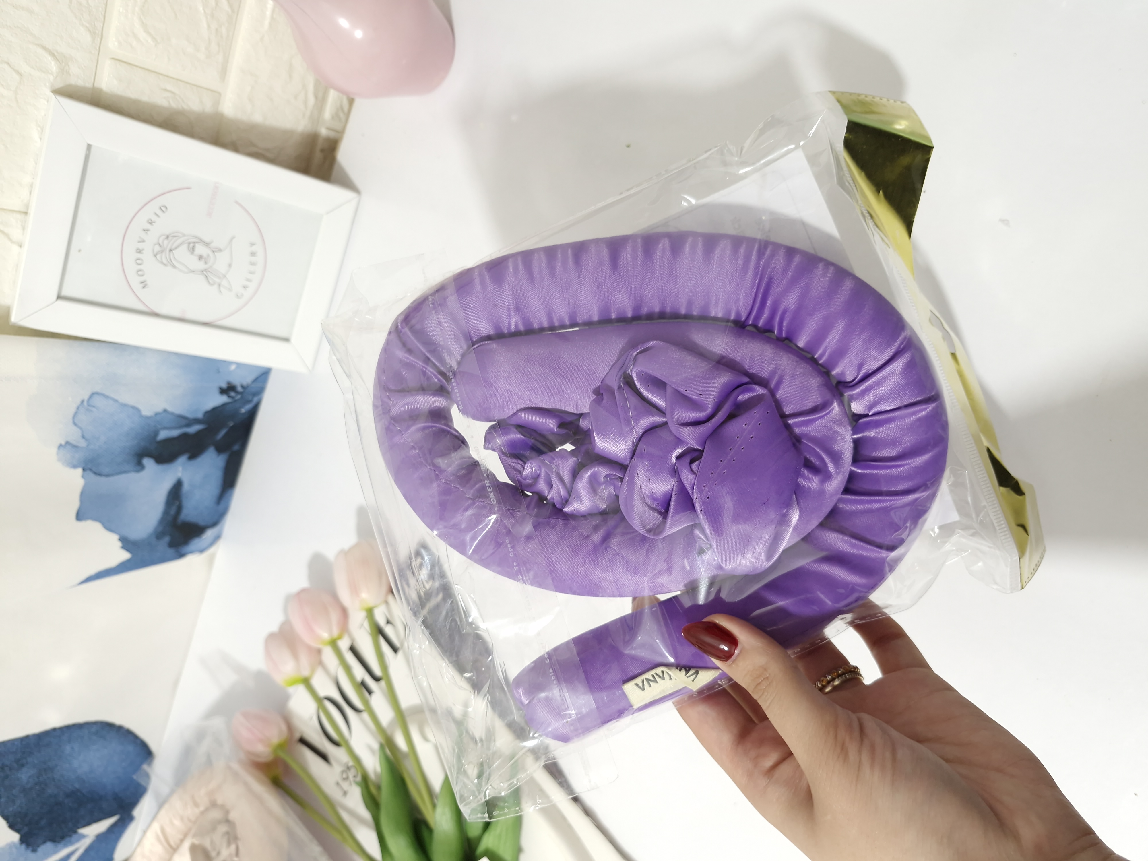 2. نوار را روی سر قرار داده و موها را به دور آن بپیچید.