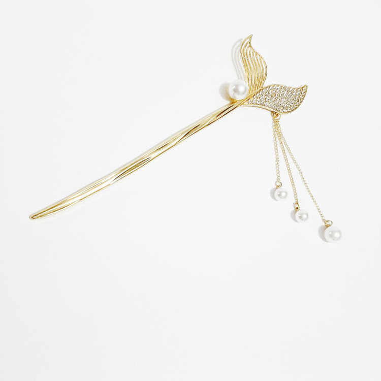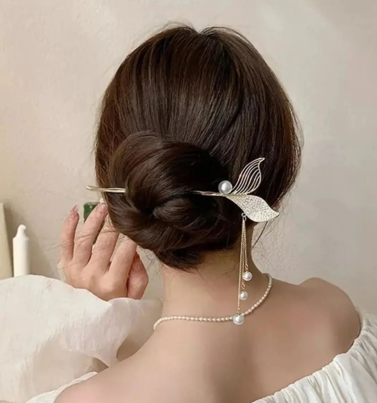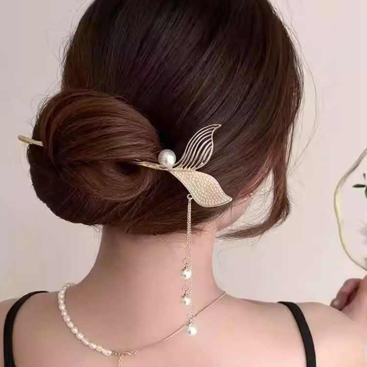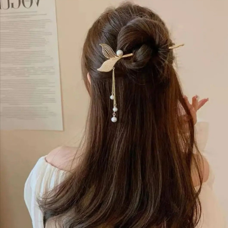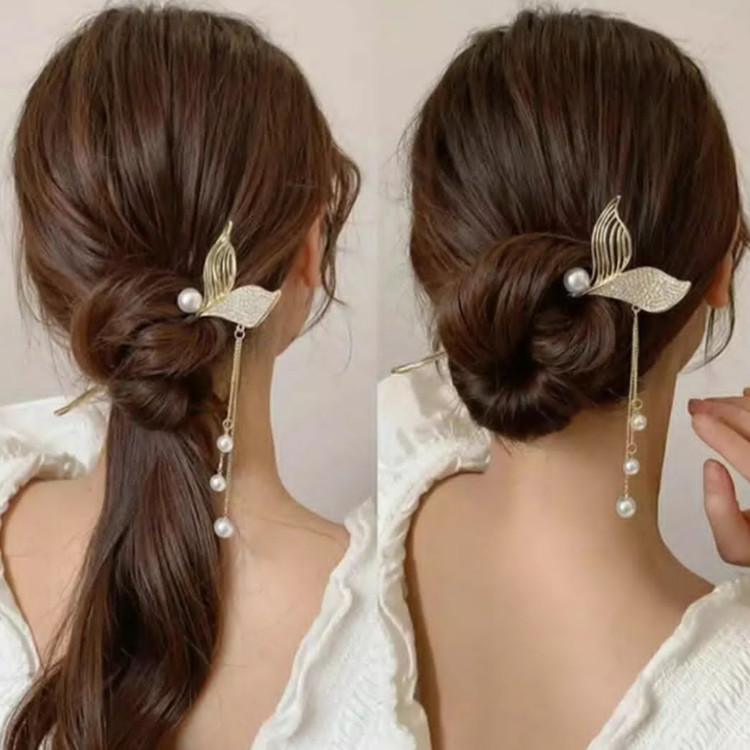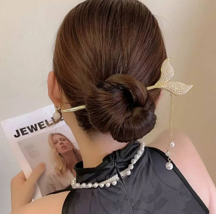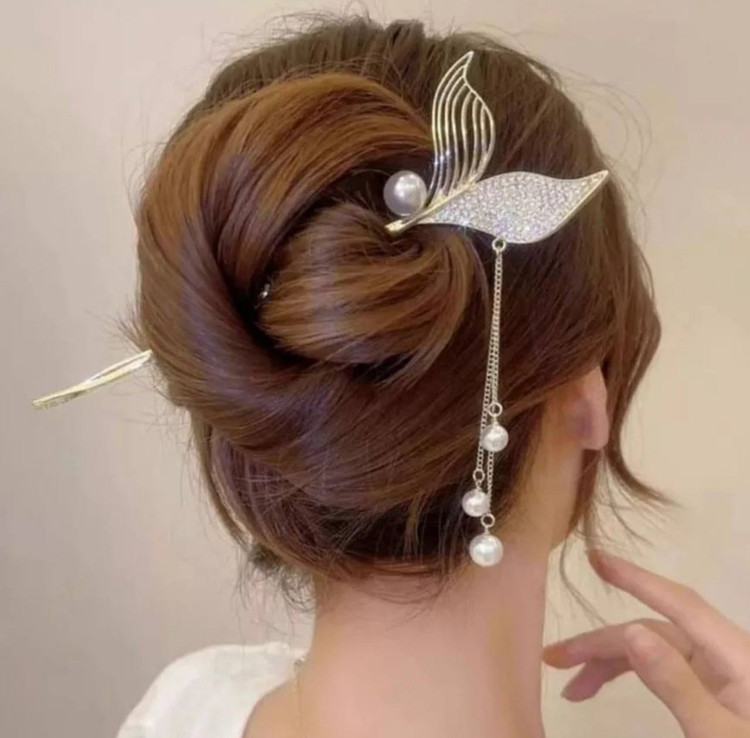 گیره مو زنانه مدل کانزاشی طرح دم ماهی نگینی آویزدار