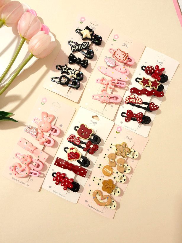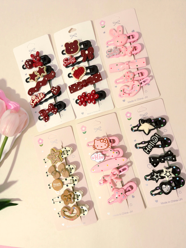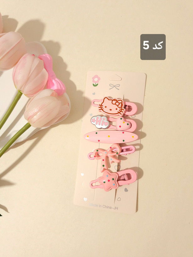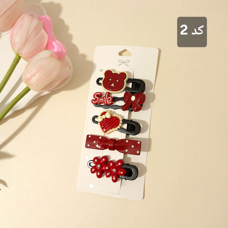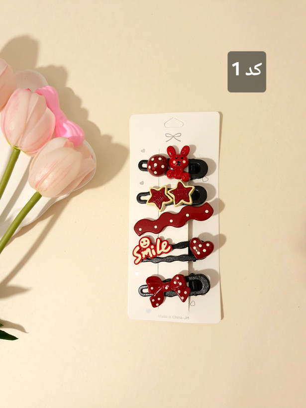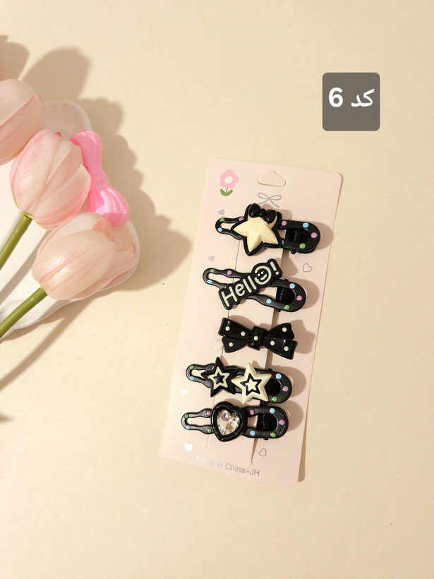 پک ۵ عددی گیره مو فلزی با طرحهای فانتزی—پاپیون، قلب، ستاره و کلی جزئیات بانمک 😍