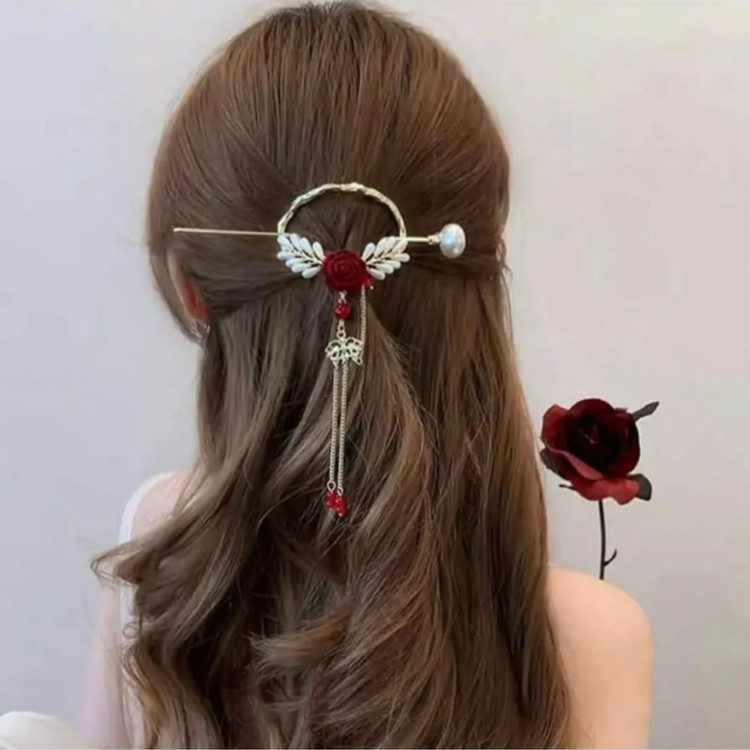 گیره مو مدل کانزاشی (سیخ مو ) طرح گل رز