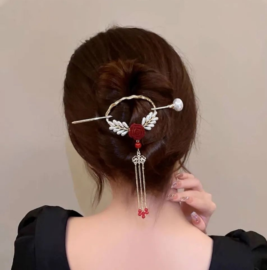 گیره مو مدل کانزاشی (سیخ مو ) طرح گل رز