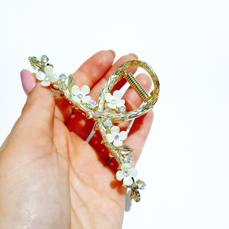 کلیپس مو زنانه مدل فلزی طرح شکوفه بهاری