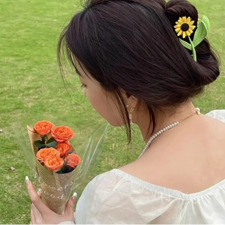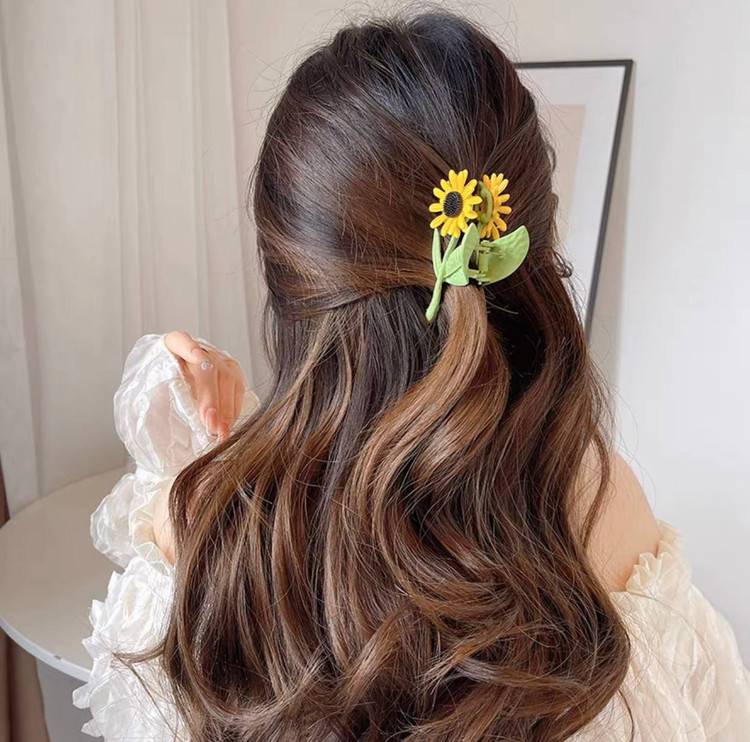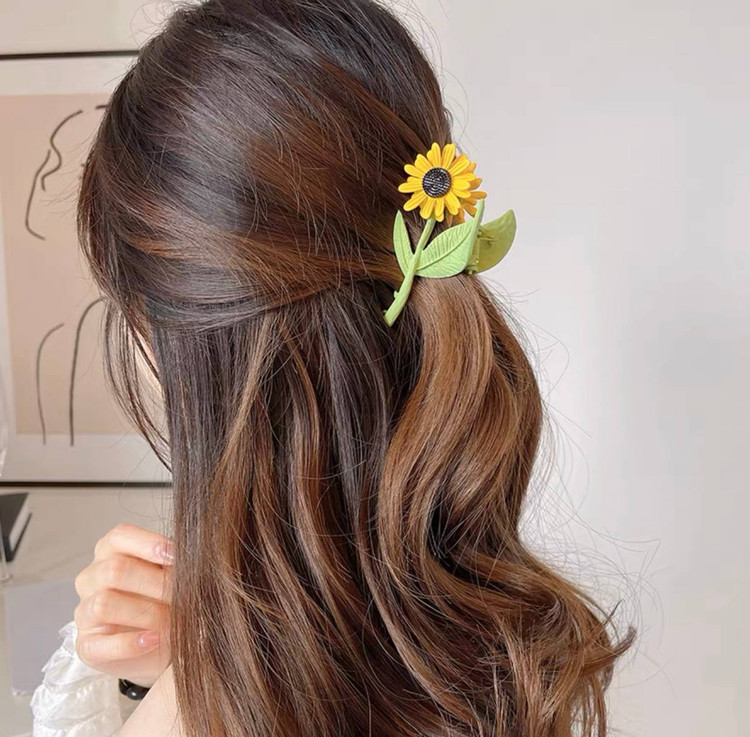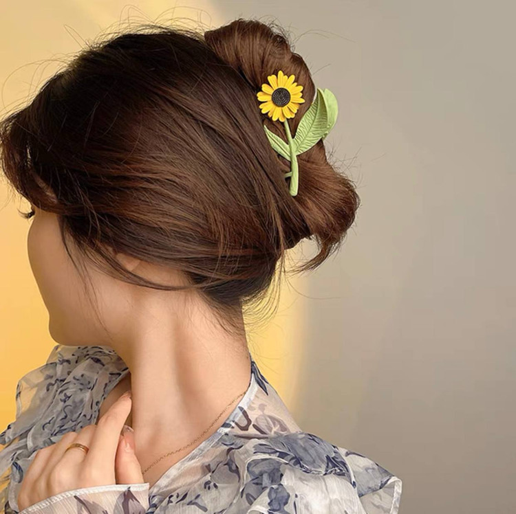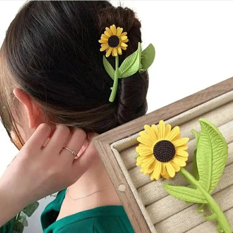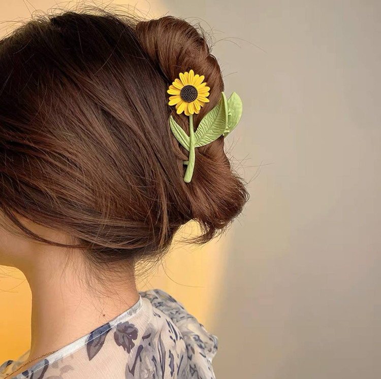 کلیپس مو زنانه مدل فلزی طرح گل افتابگردان