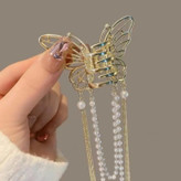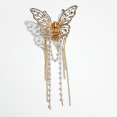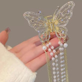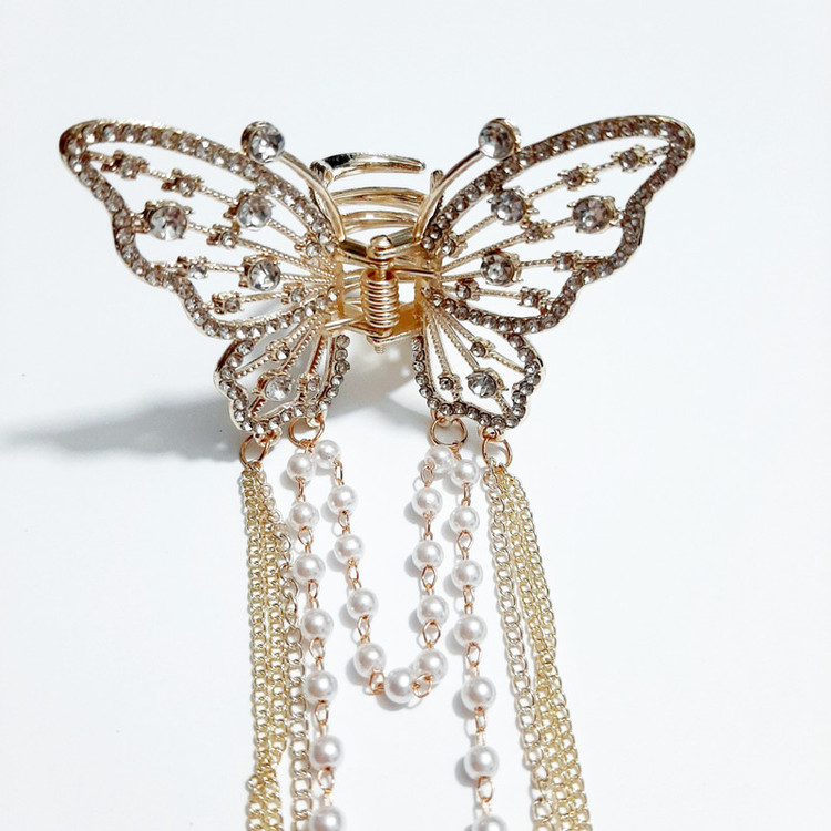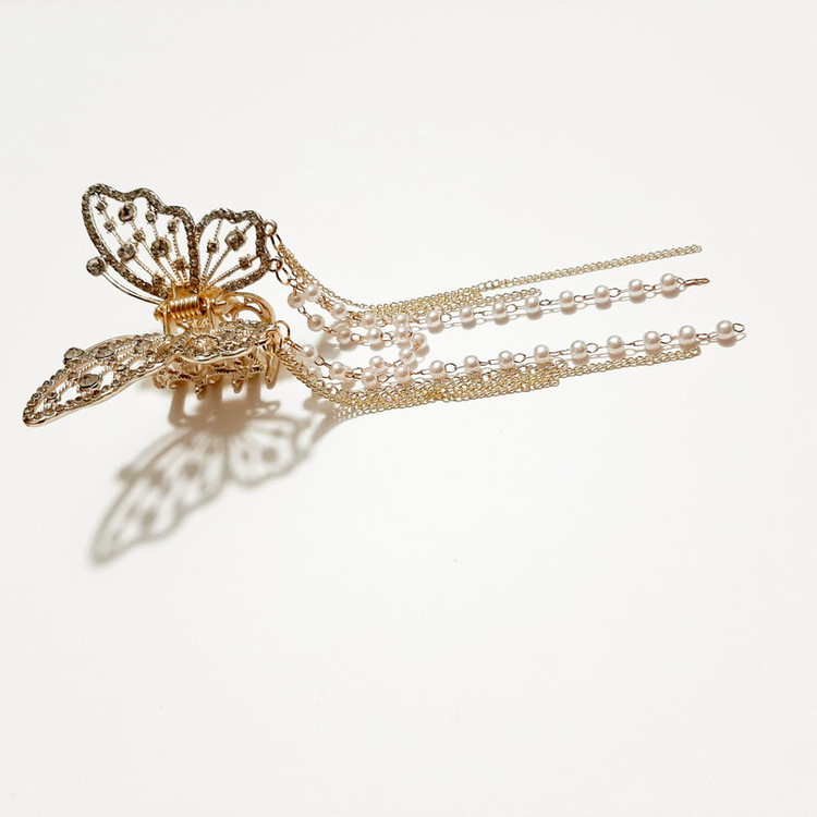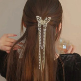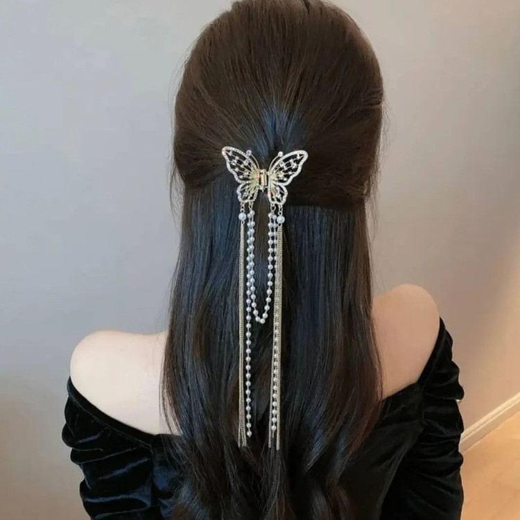 کلیپس مو زنانه مدل فلزی طرح پروانه نگینی آویز دار
