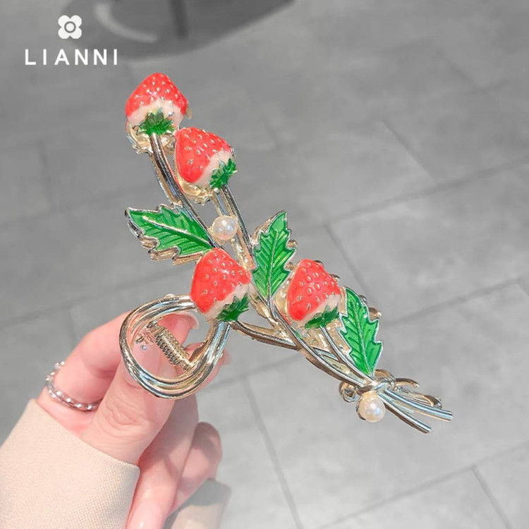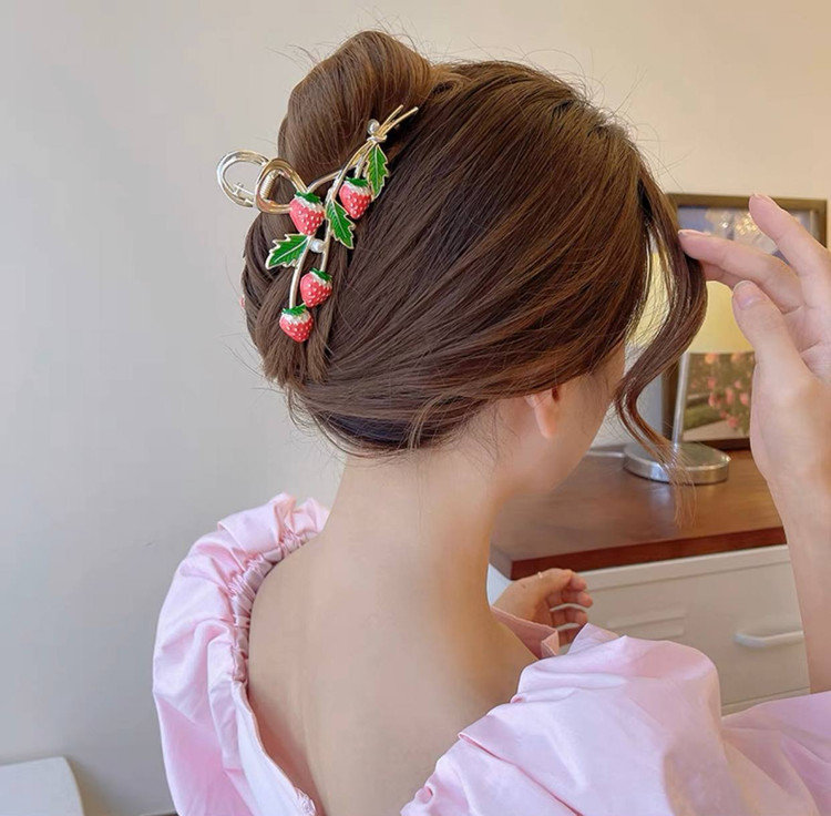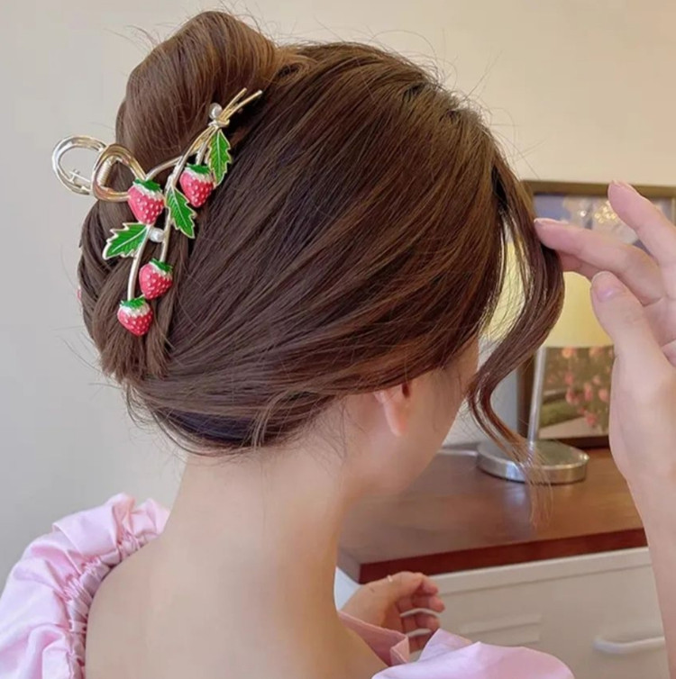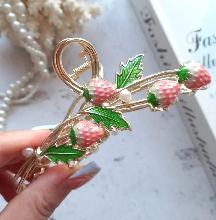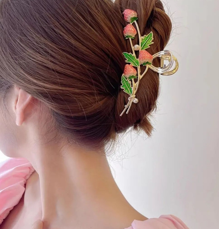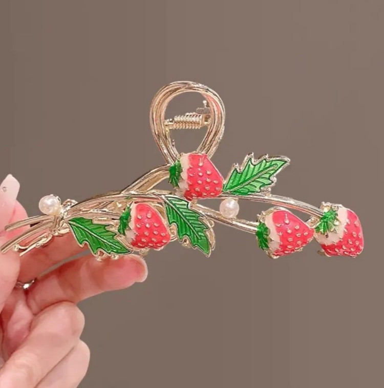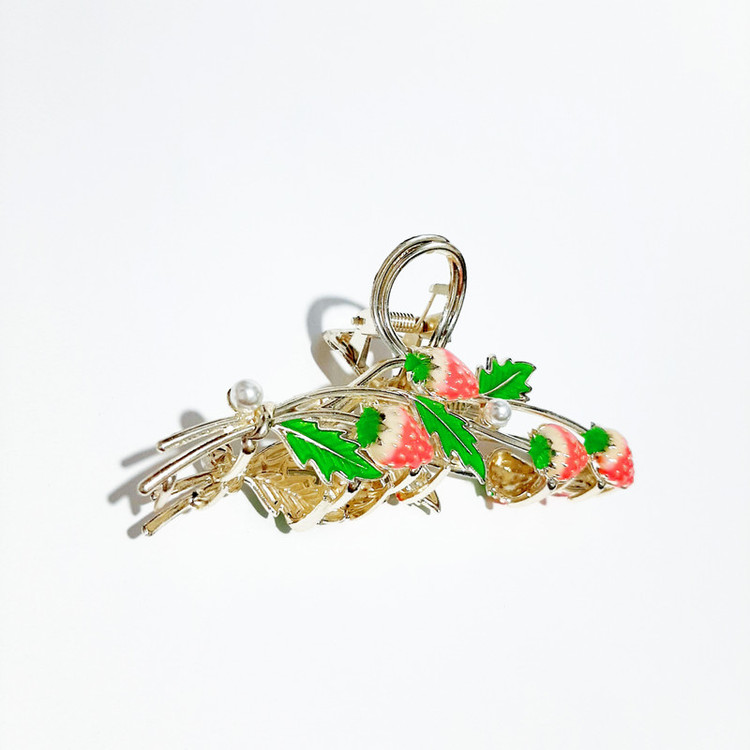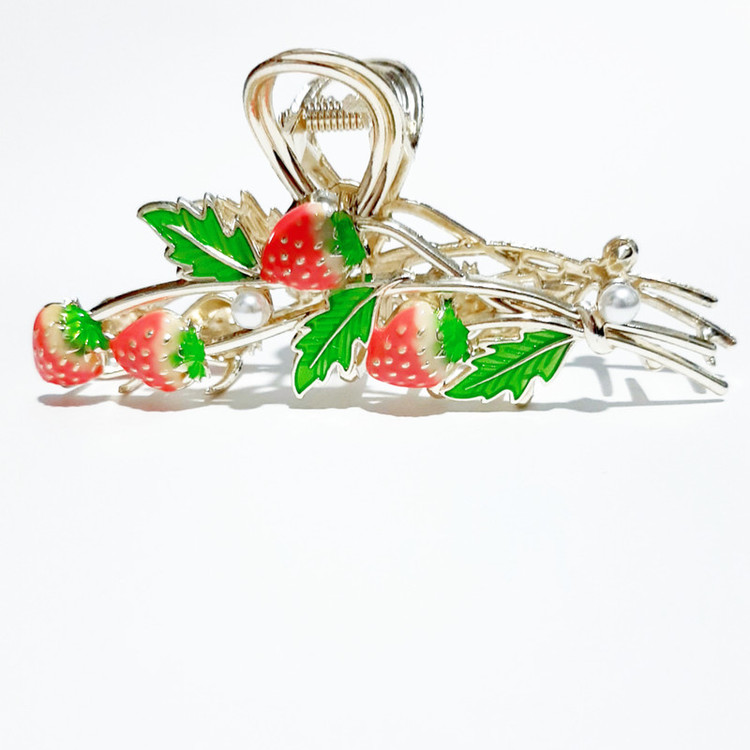 کلیپس مو زنانه مدل فلزی طرح توت فرنگی