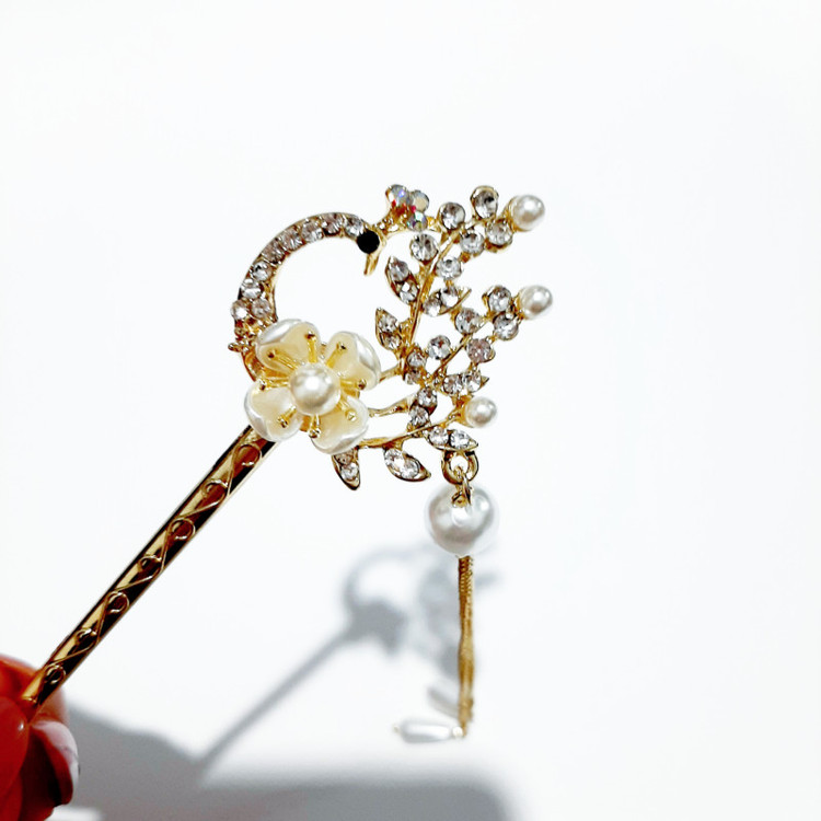 گیره مو زنانه مدل پین فلزی طرح طاووس کد 012