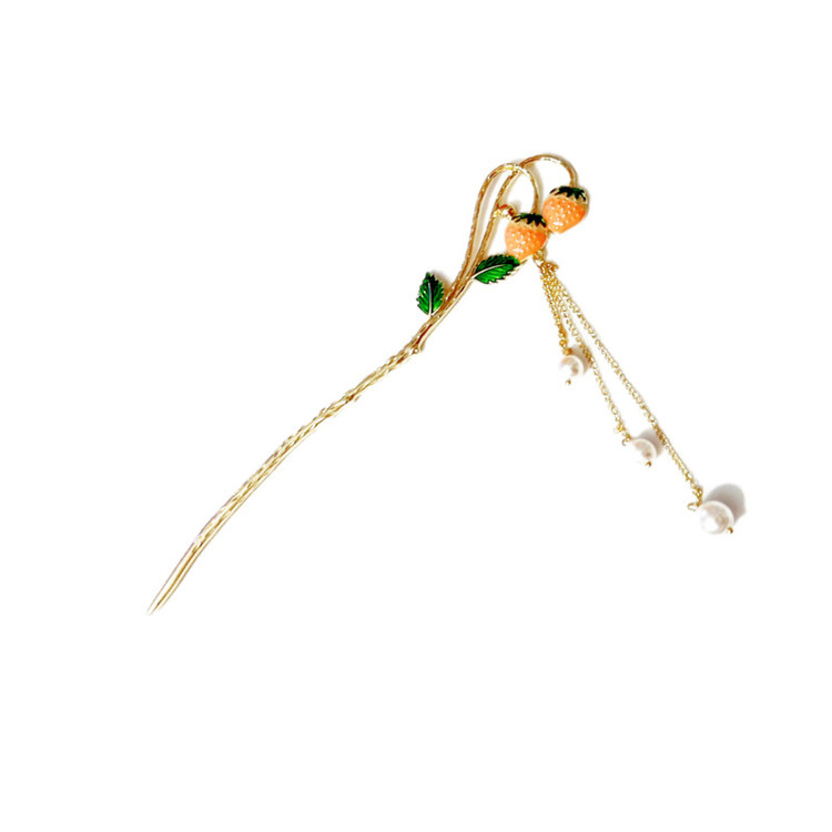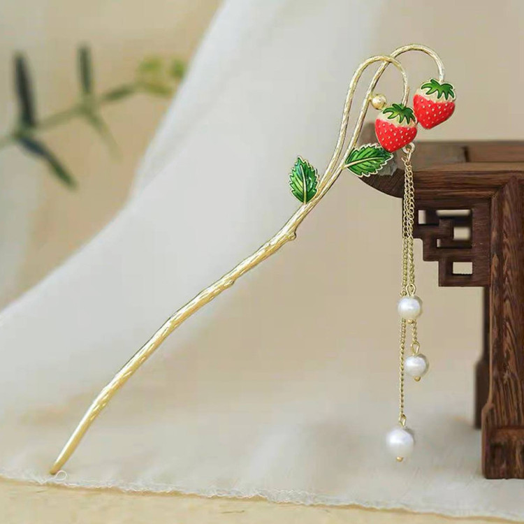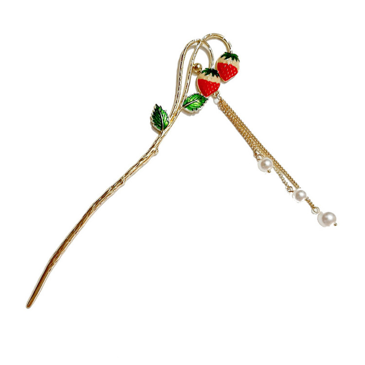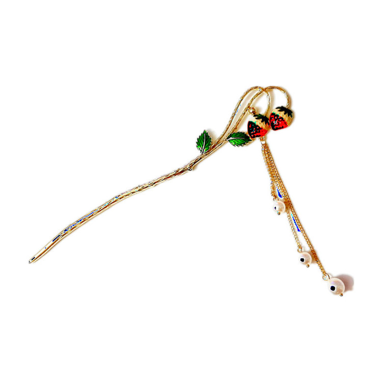 گیره مو زنانه مدل پین مو طرح توت فرنگی آویز دار