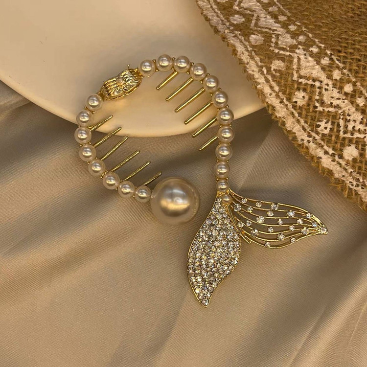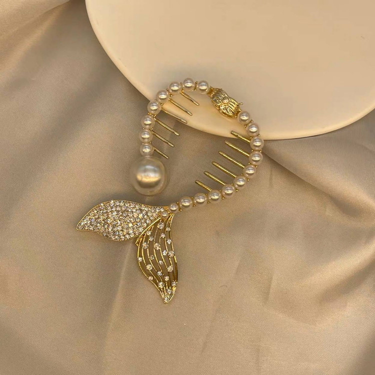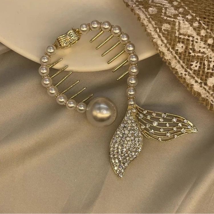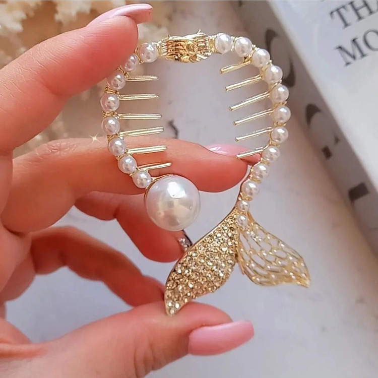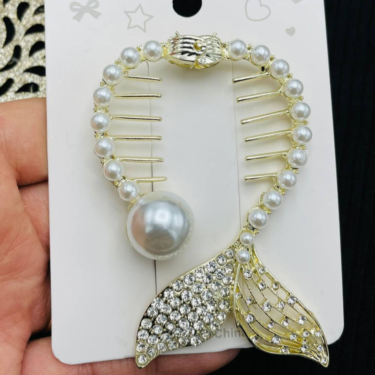 گیره مو زنانه مدل آبشاری طرح دم ماهی مرواریدی