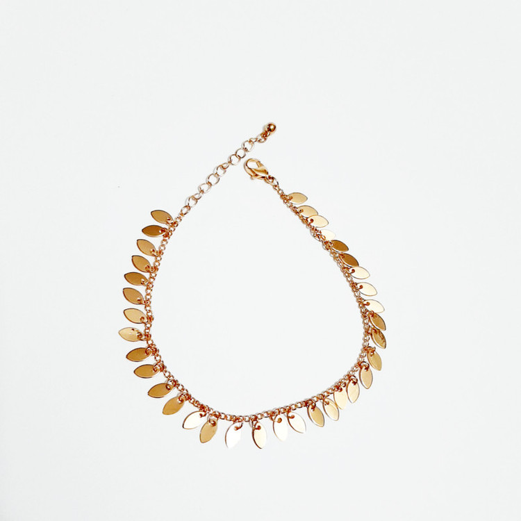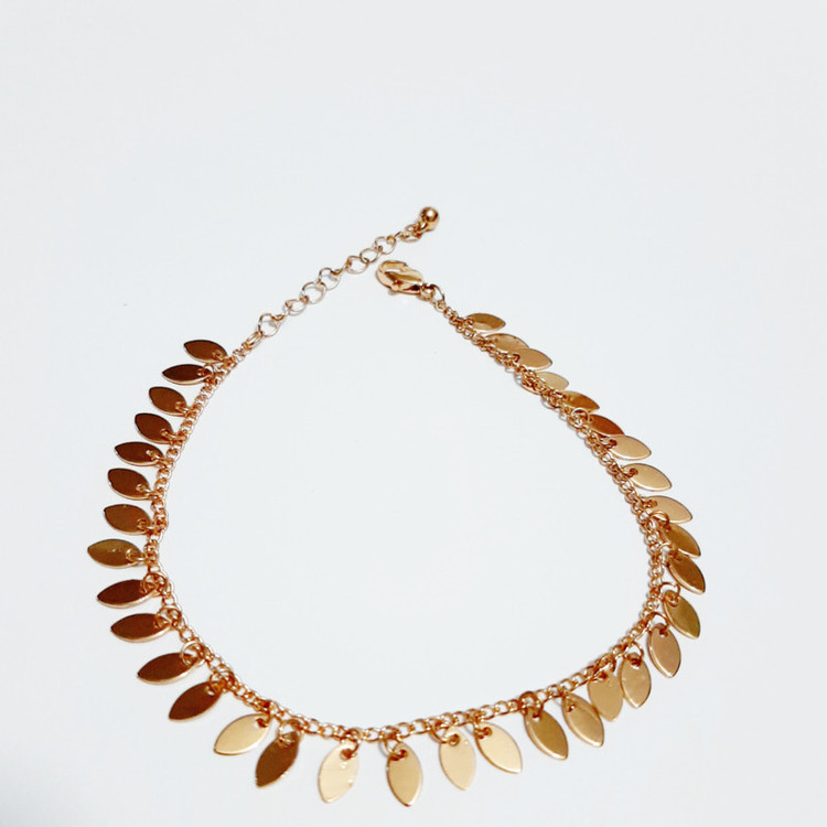 پابند ها از آن دسته اکسسوری هایی هستند که فقط افراد دارای سلیقه های خاص از آن استقبال می کنند. پابند ها جز زیورآلاتی است که پیش زمینه تاریخی آن به سال ها قبل در مصر باستان بر می گردد ، مصریان باستان استفاده بسیاری از زیور آلات داشته اند به طوری که هر طبقه خاصی ( اشرف یا مردم ساده و…..) از زیور آلات خاصی استفاده می کردنند. پایند نیز در ایران از محبوبیت خاصی برخودار است به طوری که افراد مشتاقانه تا مدت های طولاتی از این نوع زیور آلات در نوع های مختلف استفاده می کنند.پابند فوق از جنس زنجیر استیل است و پلاک های برگی طلایی به آن اویزان شده اند که در نوع خود یک مدل بسیار خاص و شیک می باشد .رنگ این زنجیر ثابت است اما نیاز به مراقبت هایی دارد تا همیشه درخشان و زیبا بماند. این زنجیر نباید با مواد شوینده والکل و... در تماس باشد