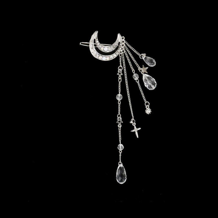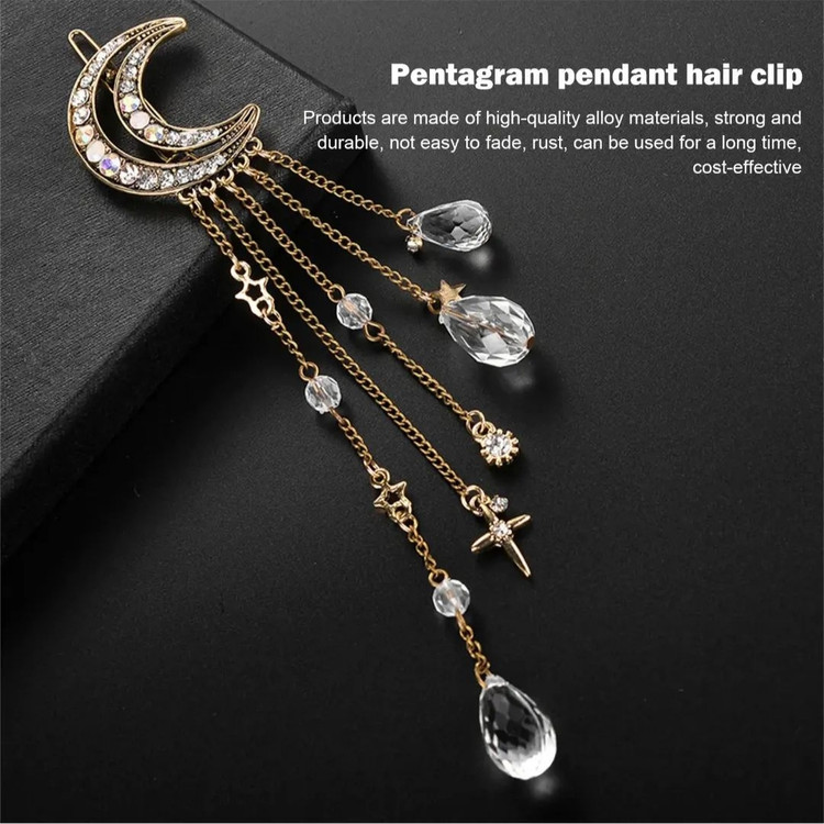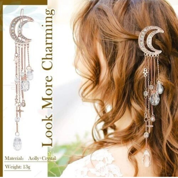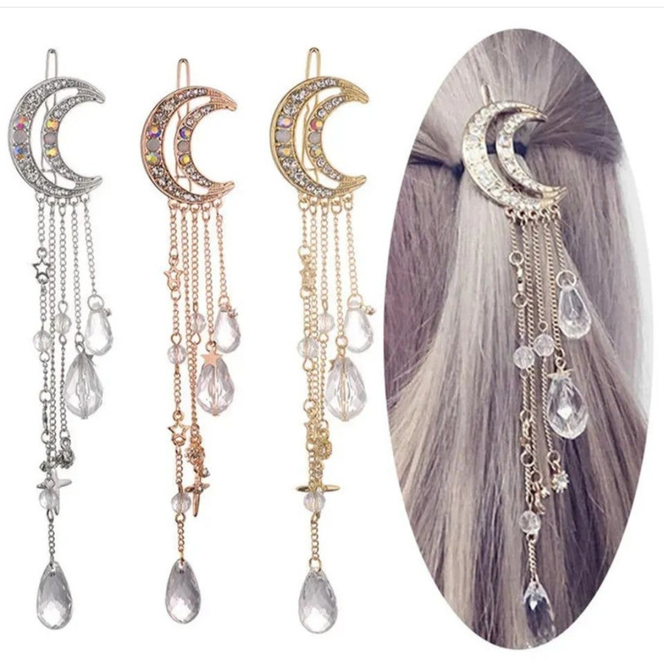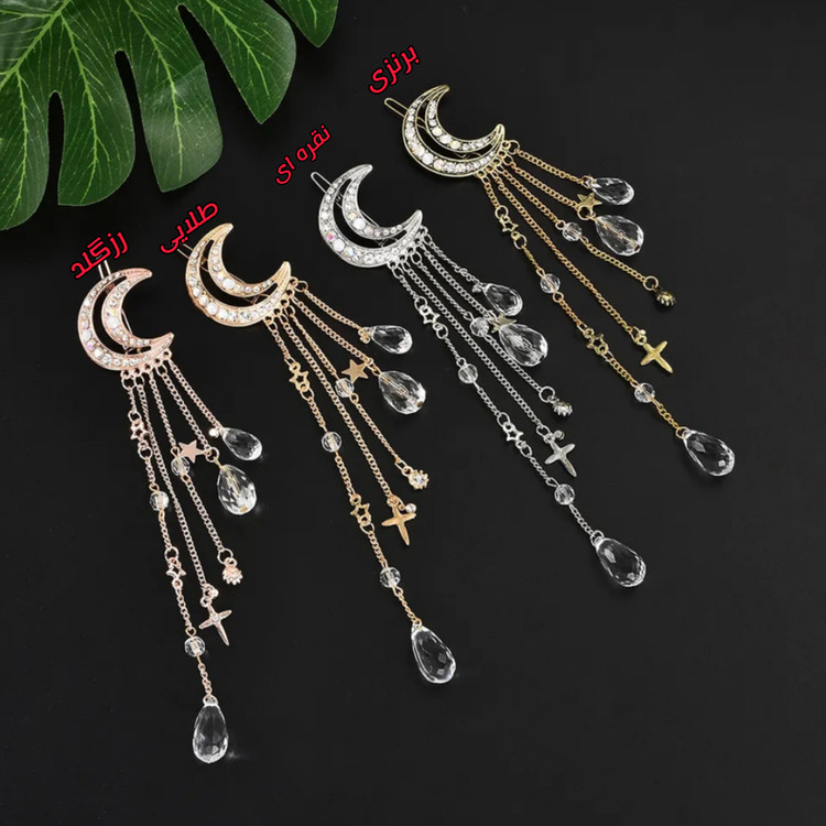 گیره مو زنانه مدل چفتی طرح ماه نگینی و آویزدار