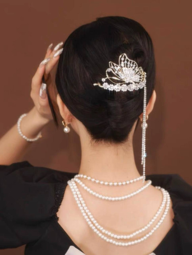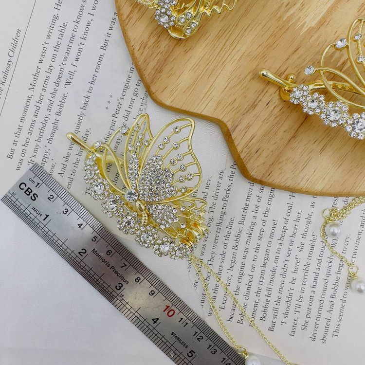گیره مو زنانه مدل چفتی آبشاری طرح پروانه نگینی برند fengy