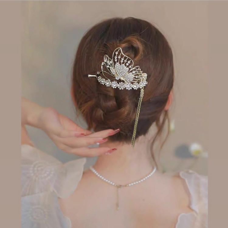 گیره مو زنانه مدل چفتی آبشاری طرح پروانه نگینی برند fengy