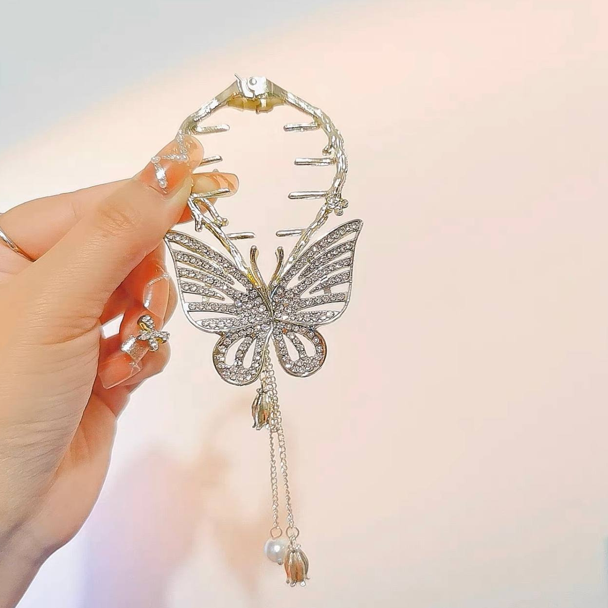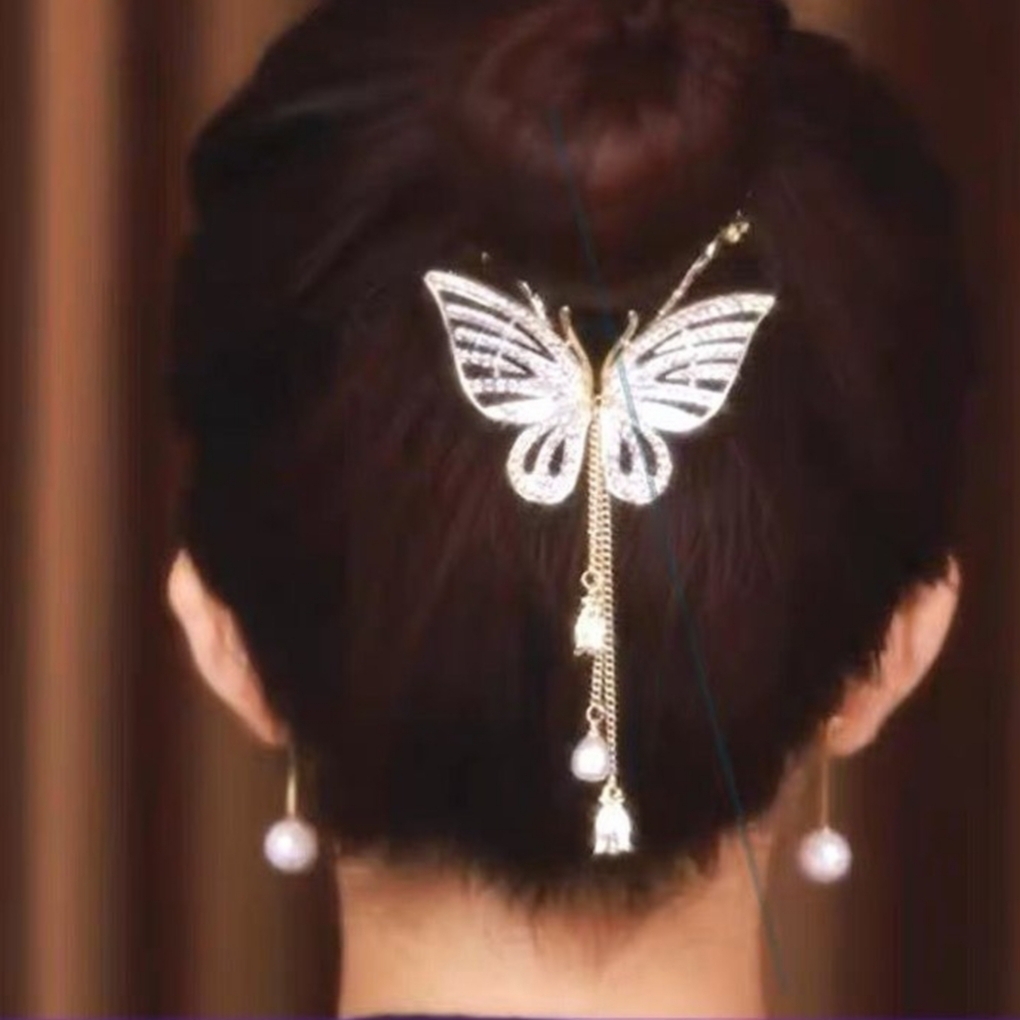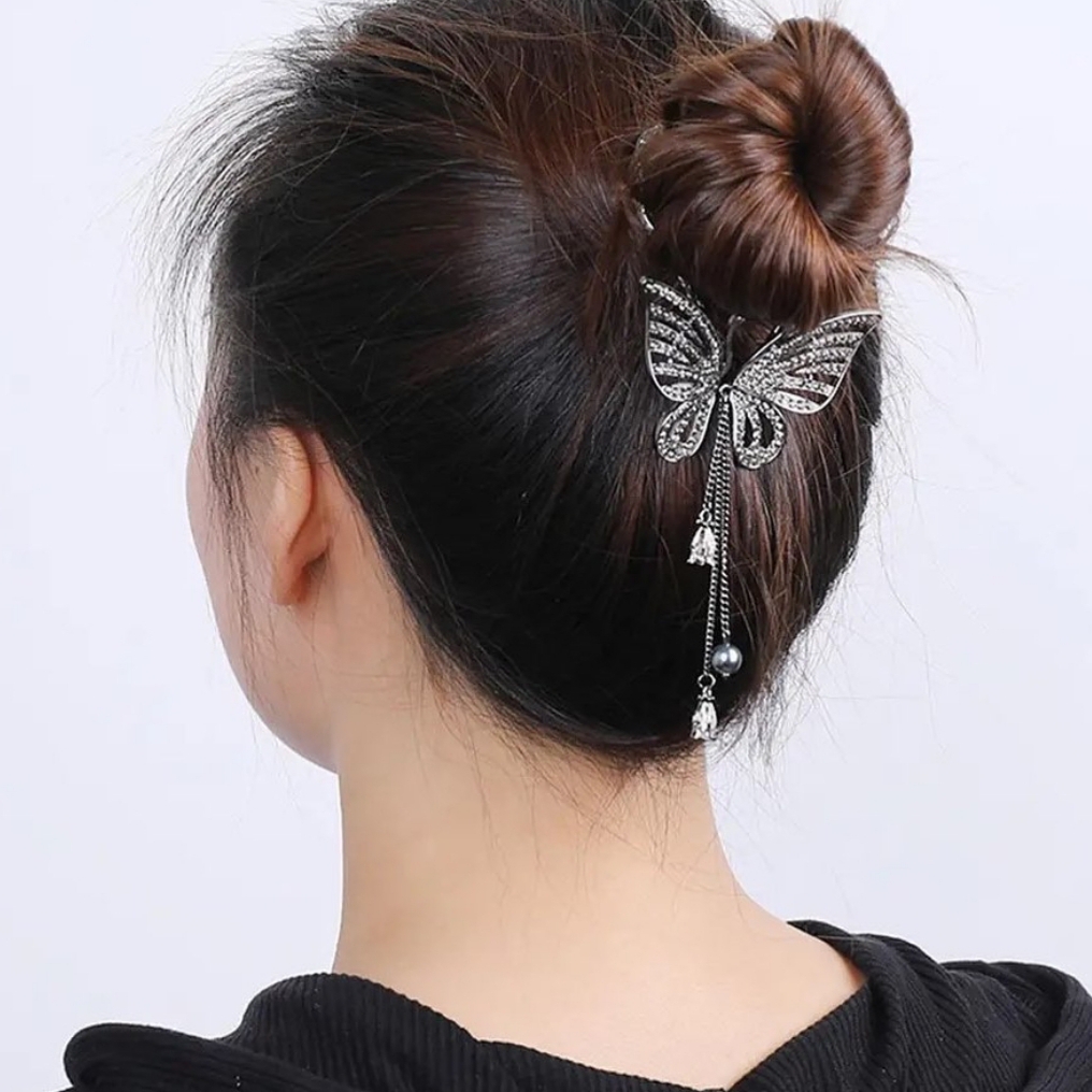 گیره مو زنانه مدل گوجه ای (آبشاری) طرح پروانه آویزدار