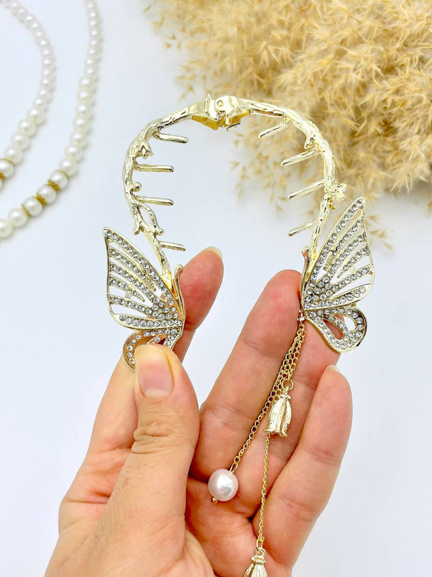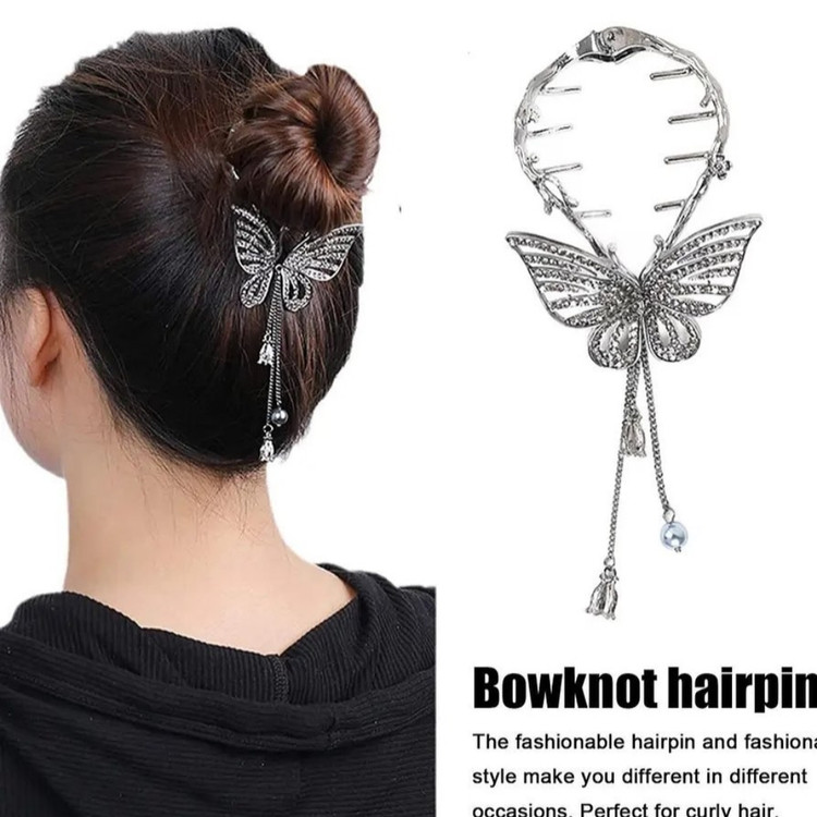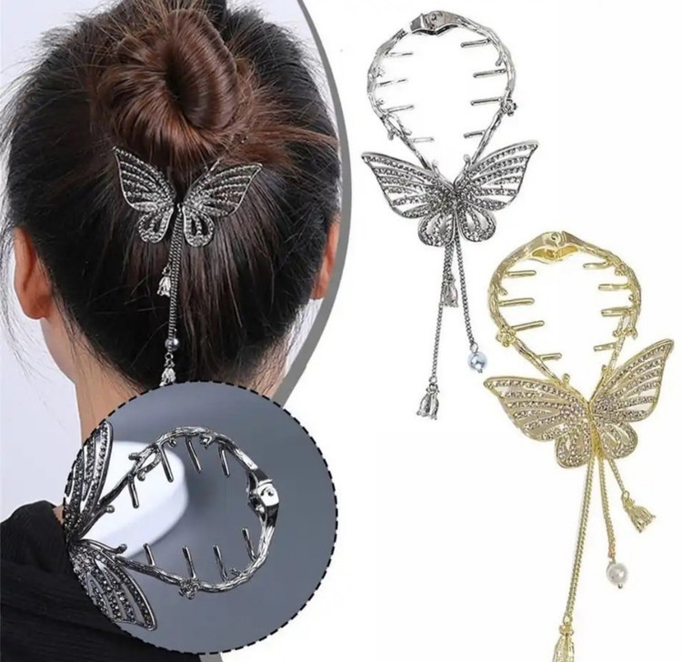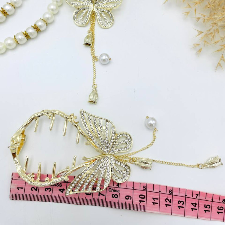 گیره مو زنانه مدل گوجه ای (آبشاری) طرح پروانه آویزدار