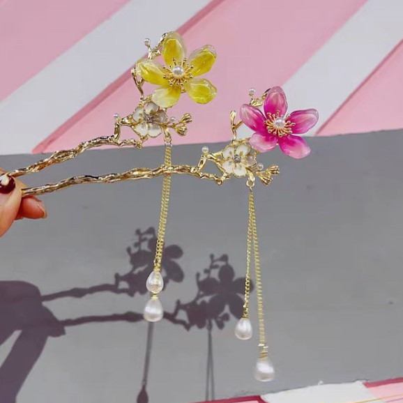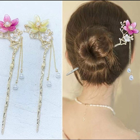 گیره مو کانزاشی طرح گل کریستالی برند zaya