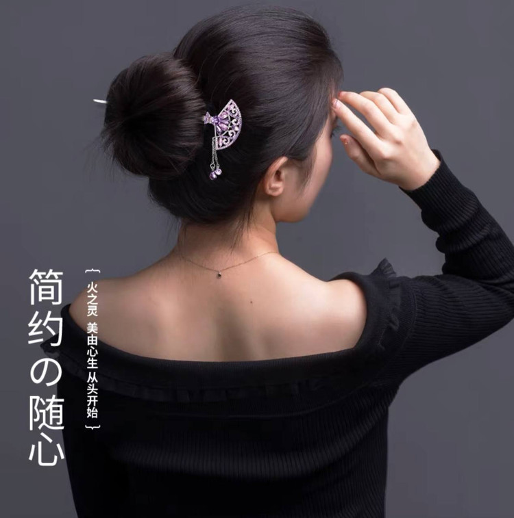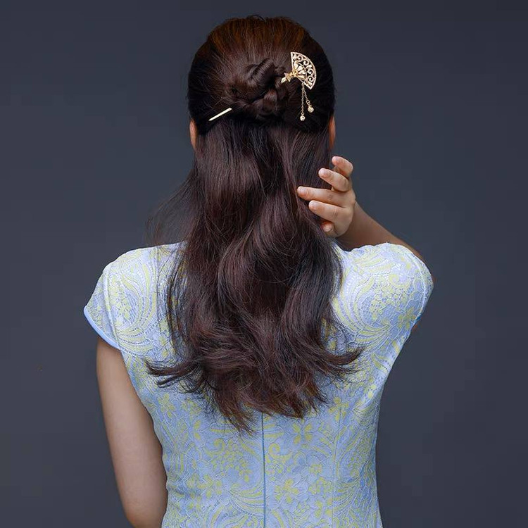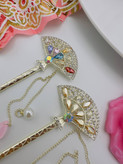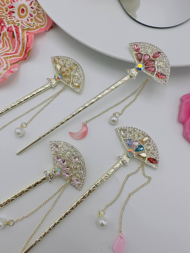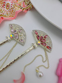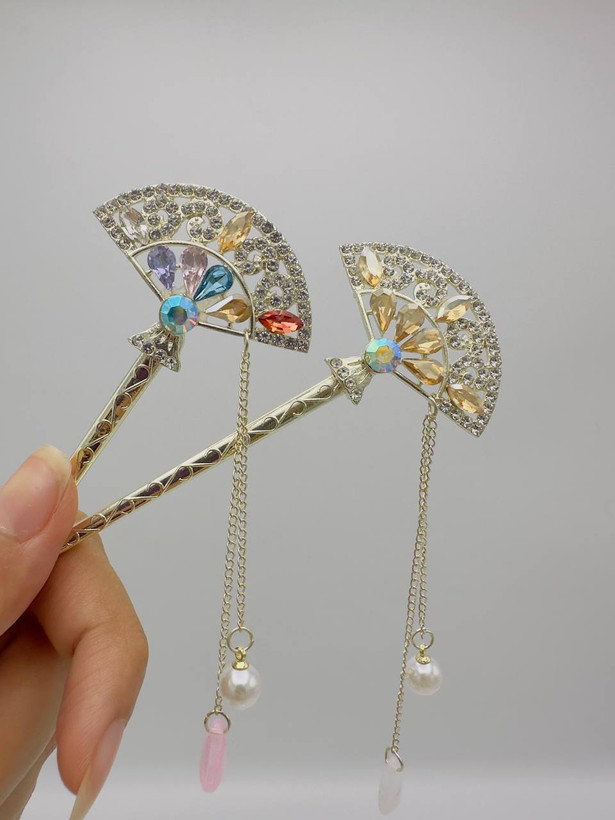 گیره مو کانزاشی فلزی طرح بادبزن نگین دار