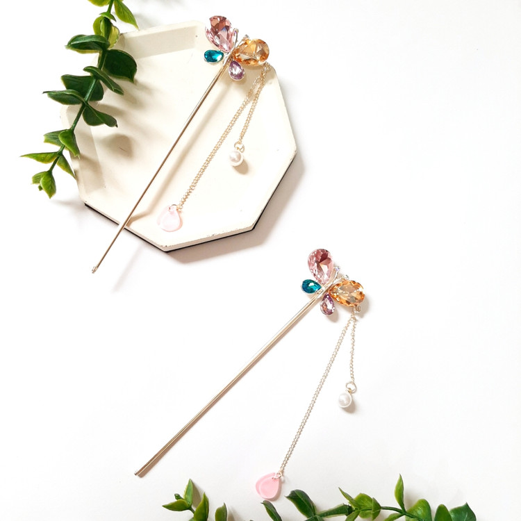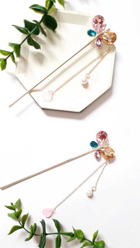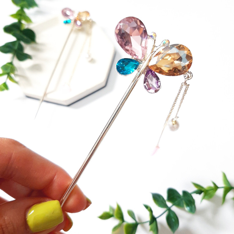 گیره مو کانزاشی فلزی طرح پروانه شیشه ای