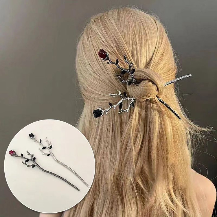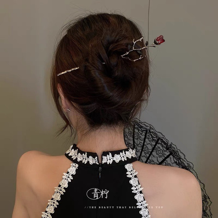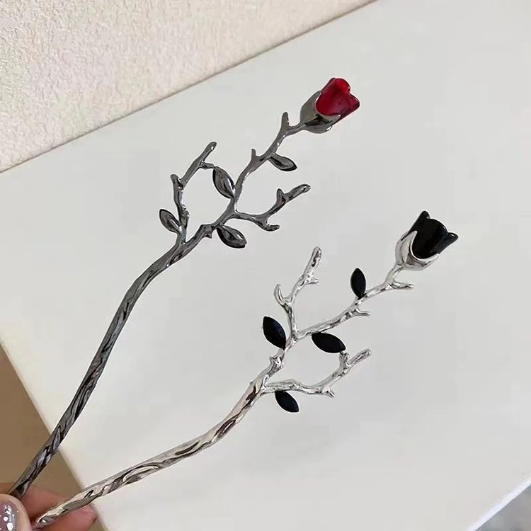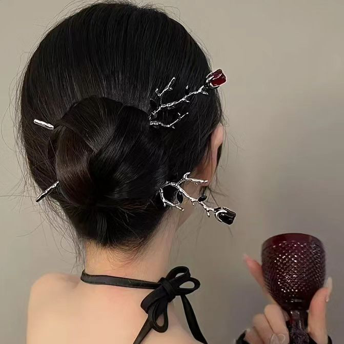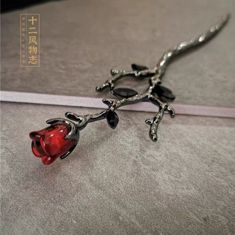گیره مو کانزاشی (پین مو) طرح گل لاله قرمز