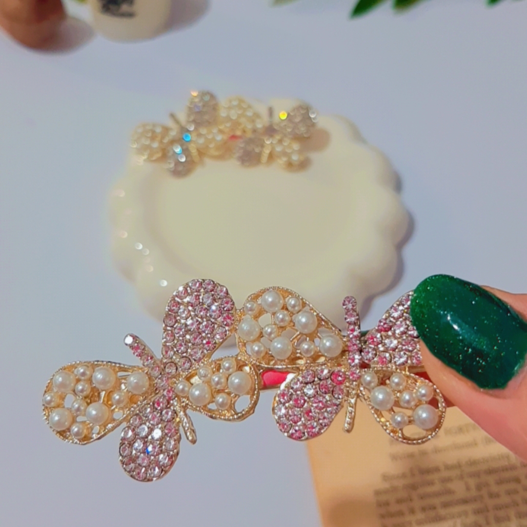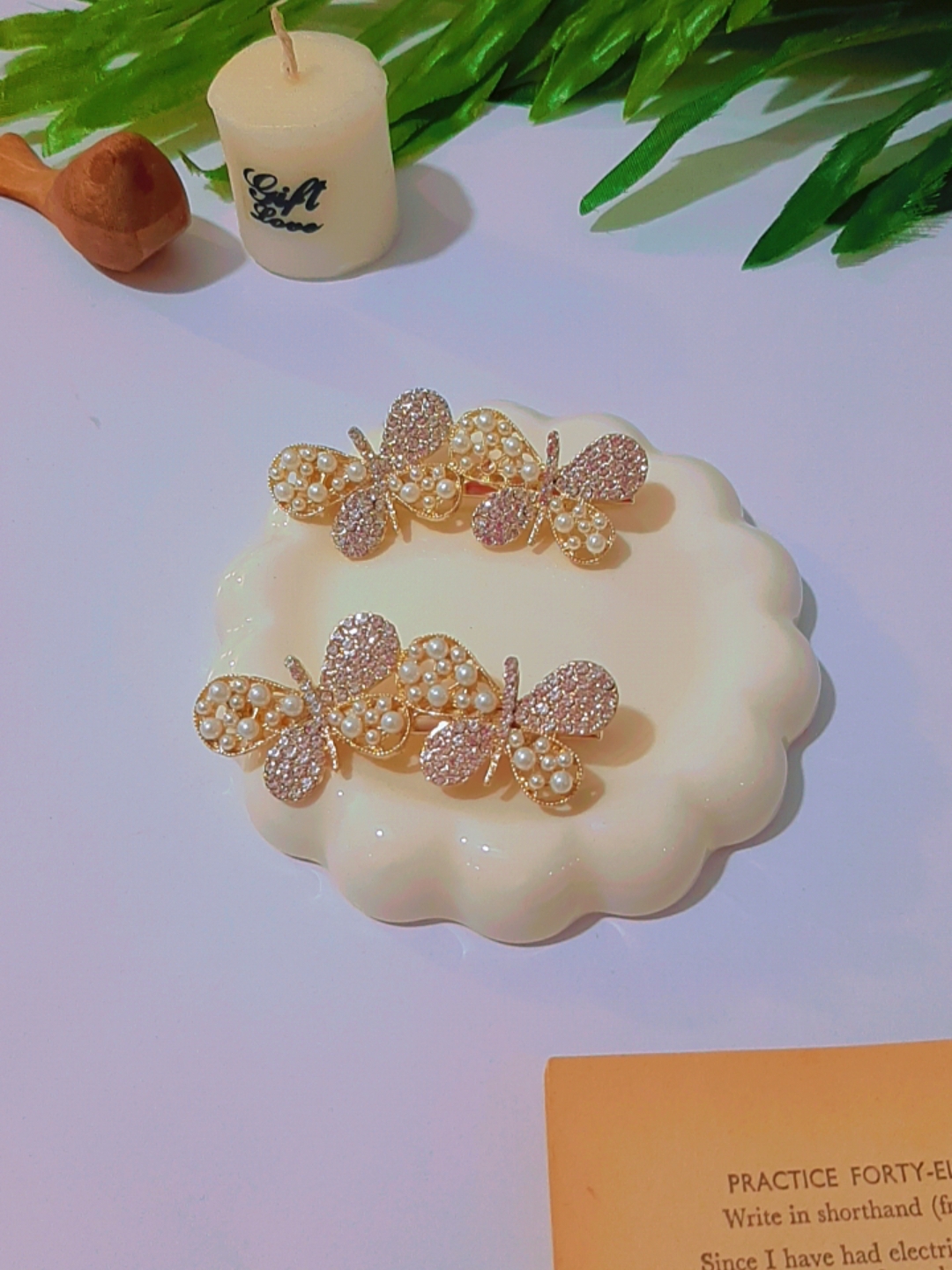 گیره مو انبری فلزی طرح پروانه رنگ ثابت