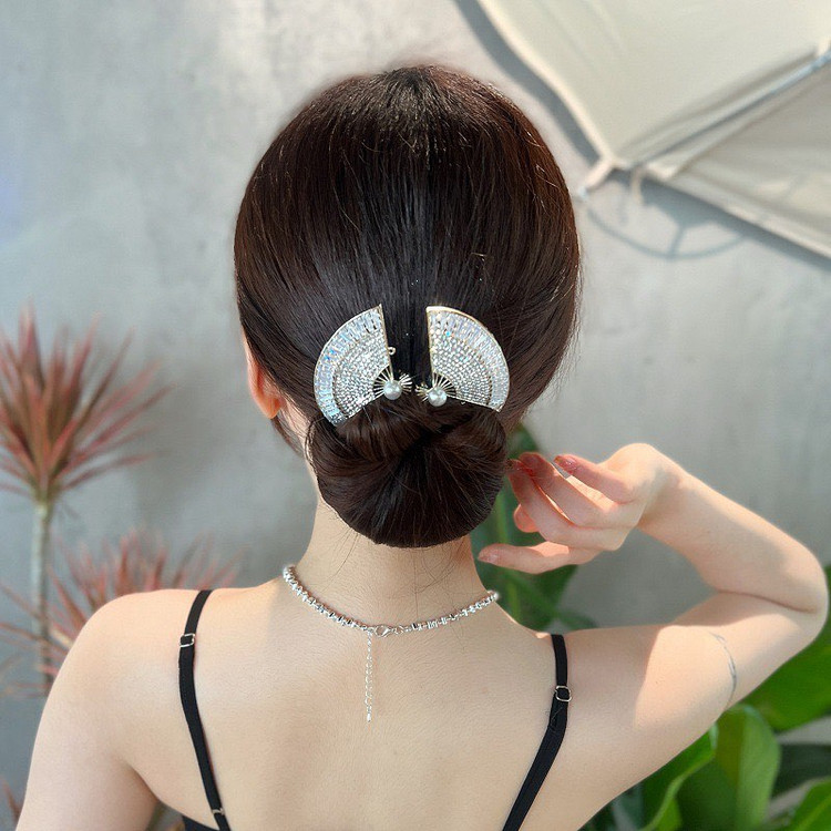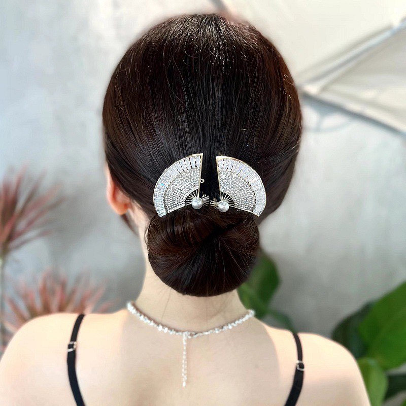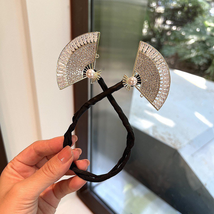 گیره مو باندفر مجلسی رنگ ثابت طرح بادبزن نگینی