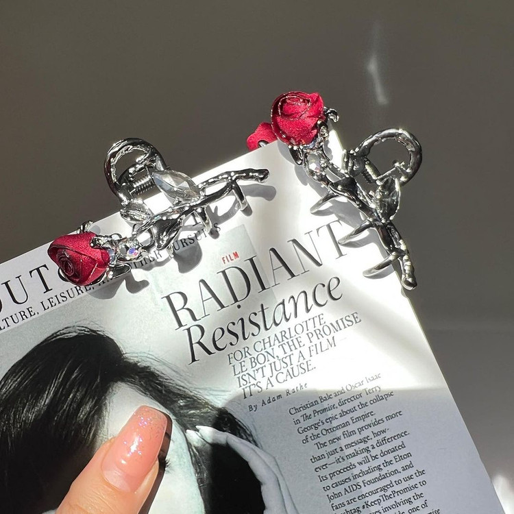 کلیپس مو فلزی رنگ دودی برند معتبر zaya طرح گل رز رنگ ثابت