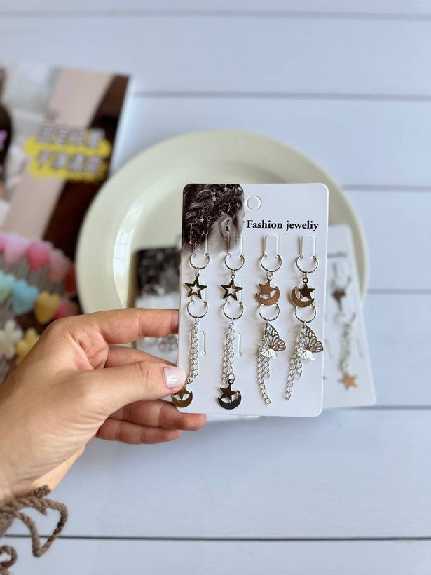 پک حلقه مو (پیرسینگ مو ) طرح پروانه و برگ ۱۰ عددی