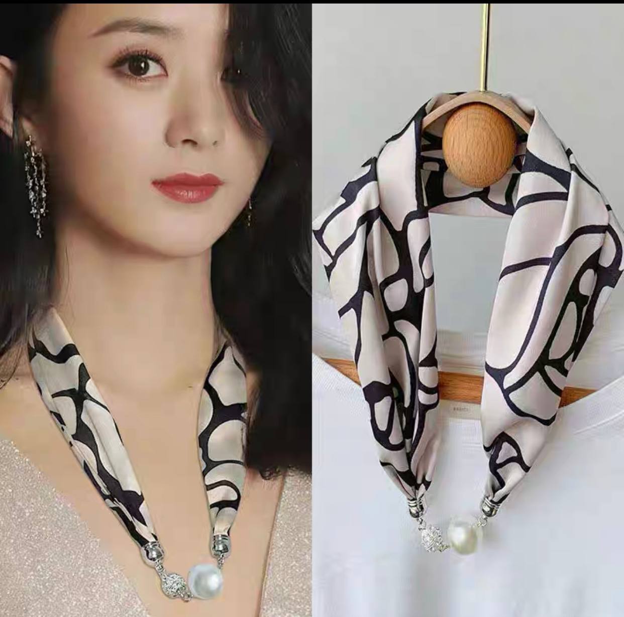 هدبند مو و دستمال گردن مگنتی دوکاره ساتن طرحدار بسیار خاص و وارداتی