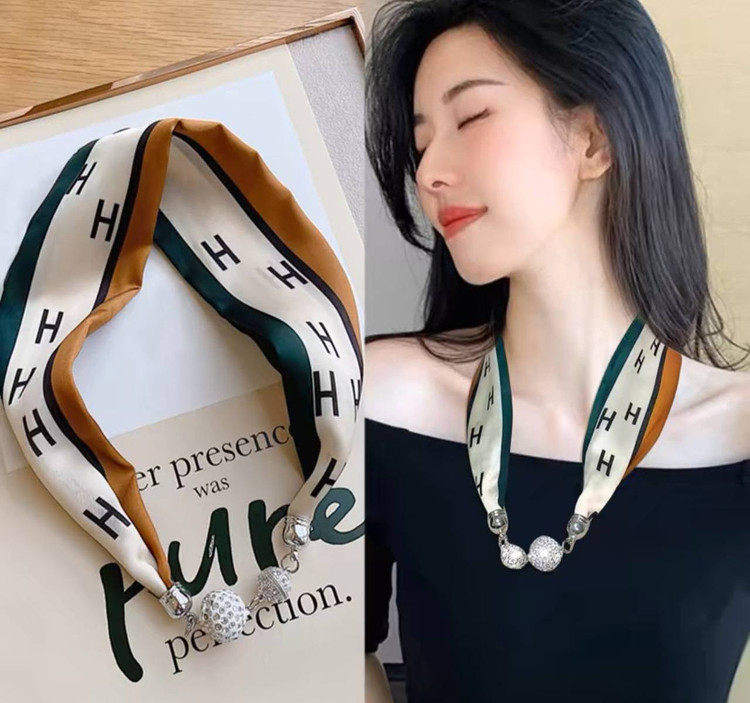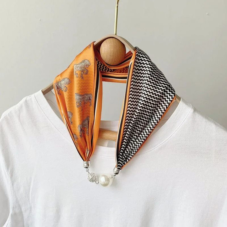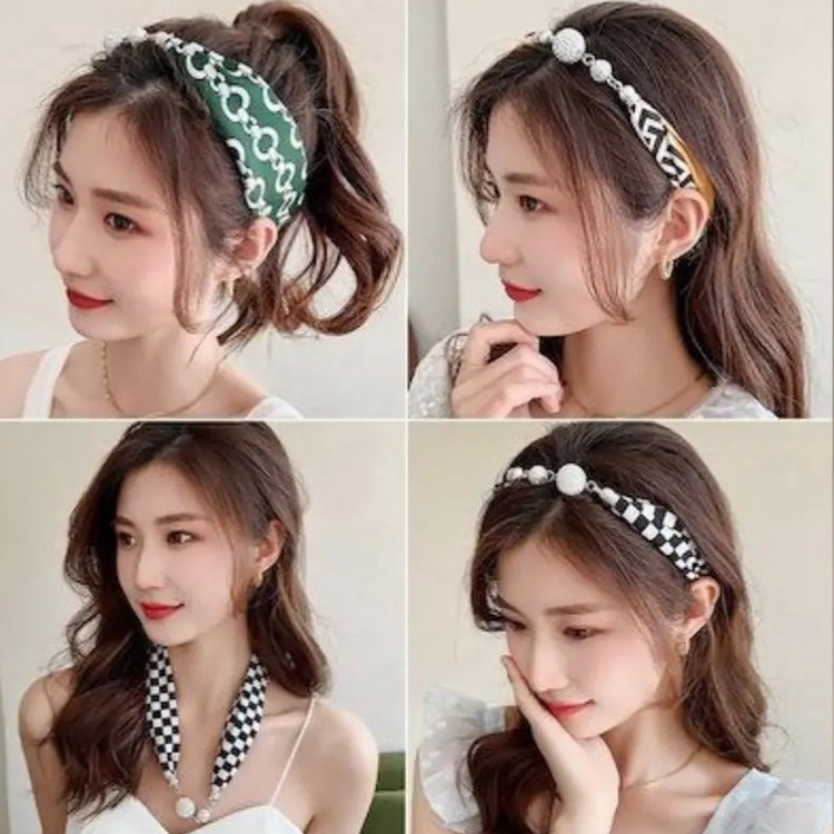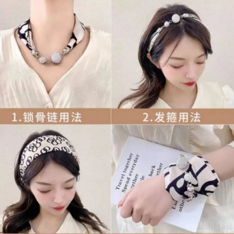 هدبند مو و دستمال گردن مگنتی دوکاره ساتن طرحدار بسیار خاص و وارداتی