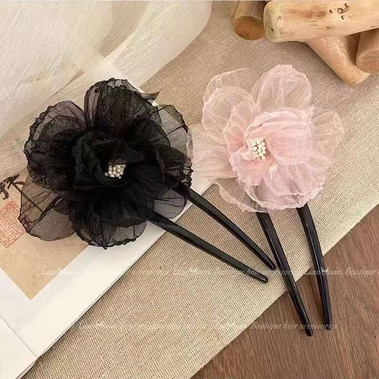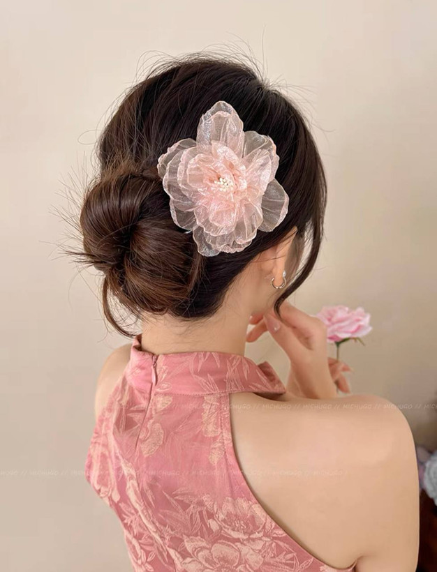 گیره مو کانزاشی گل حریر دوپایه بسیار خاص و شیک وارداتی
