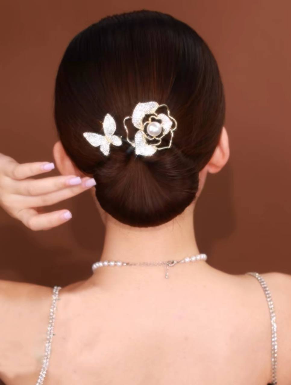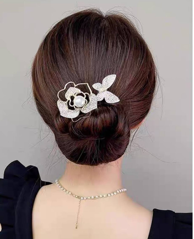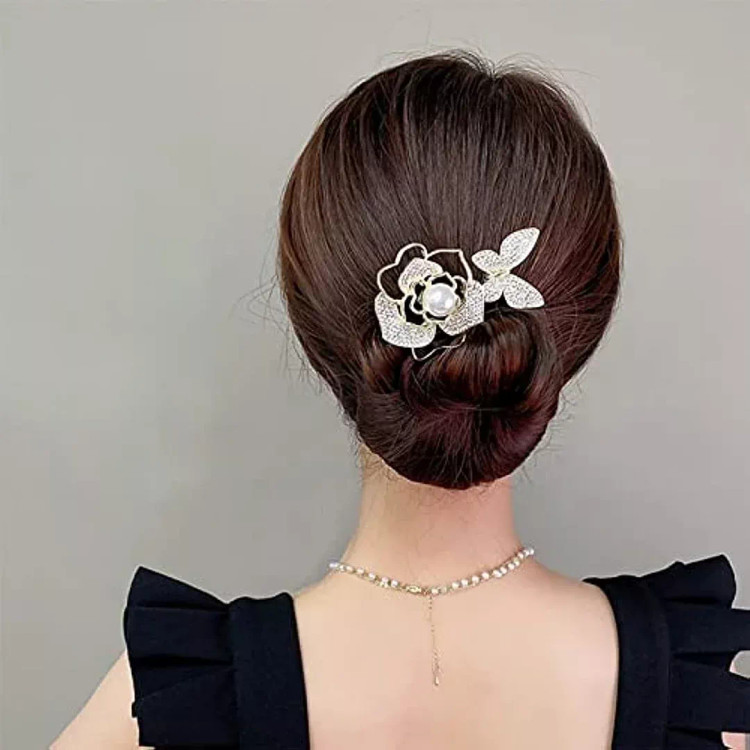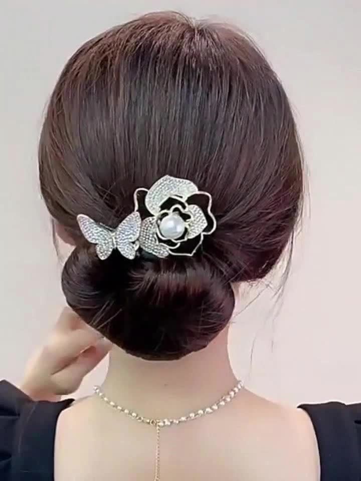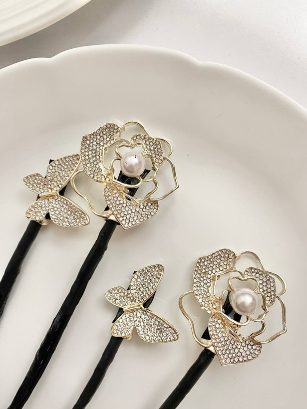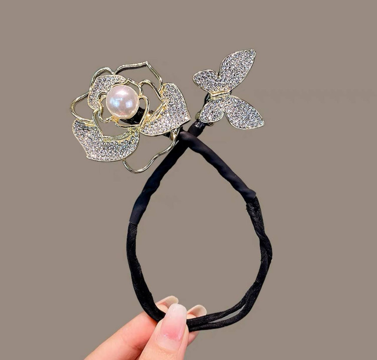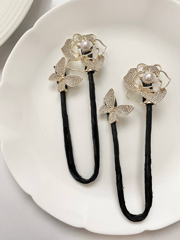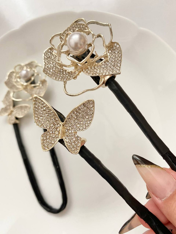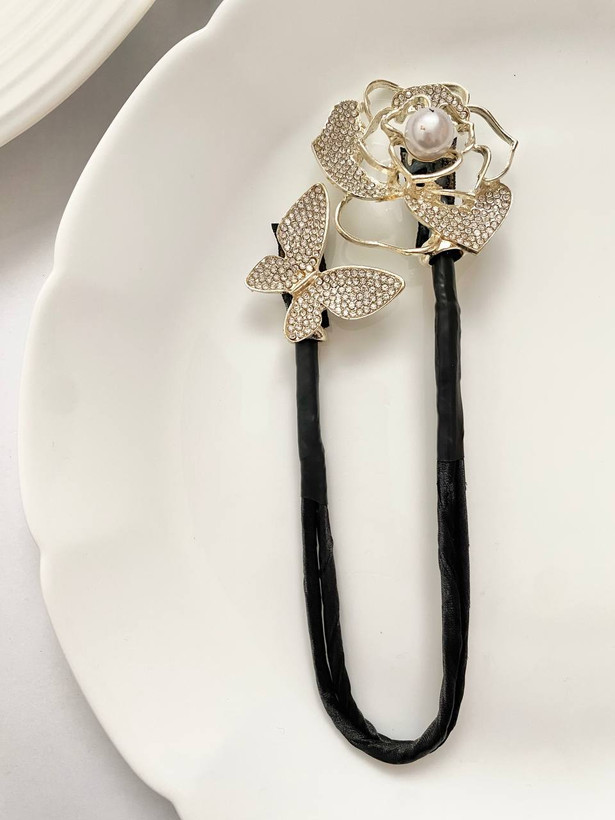 گیره مو باندفر مجلسی طرح گل رز و پروانه نگینی برند zaya