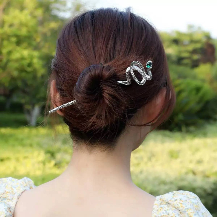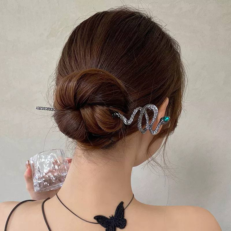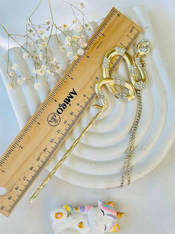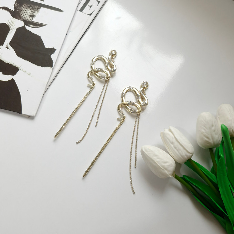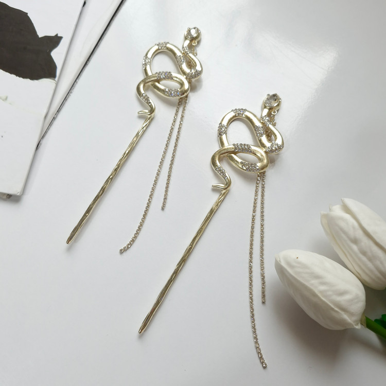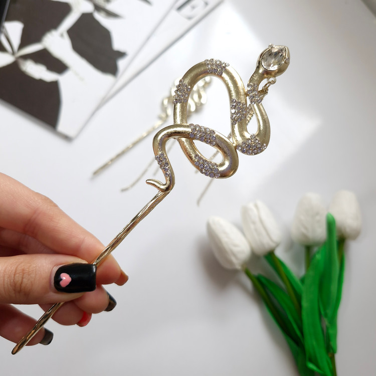 گیره مو کانزاشی فلزی طرح مار نگینی آویز دار رنگ ثابت وارداتی