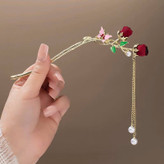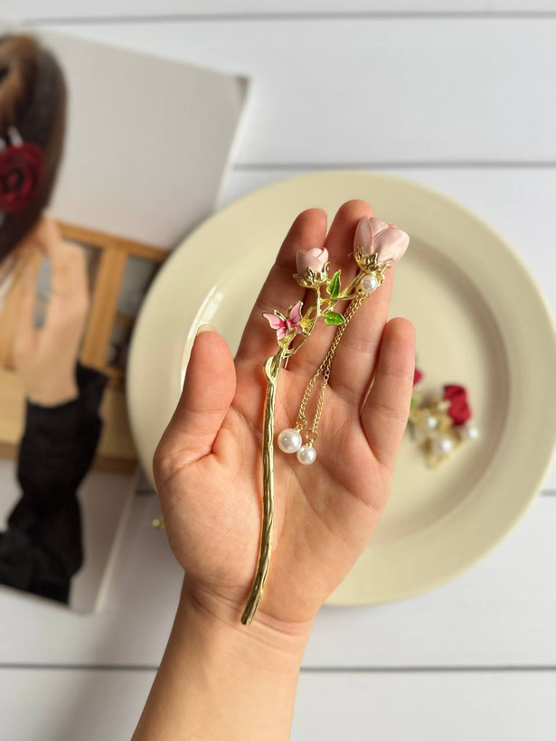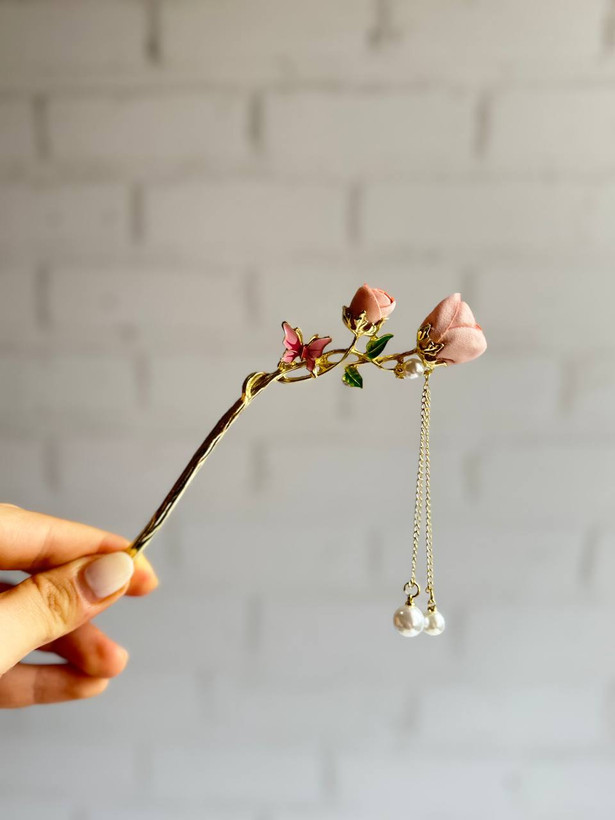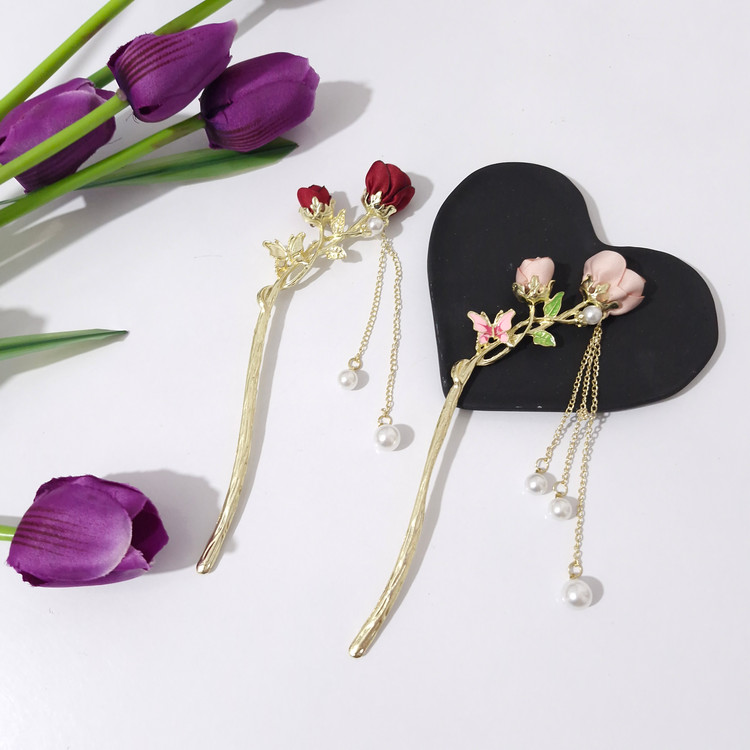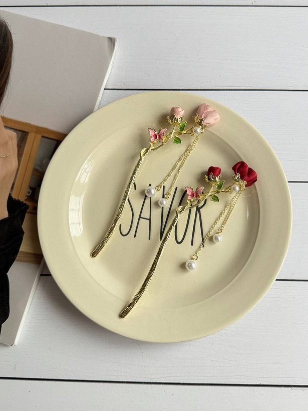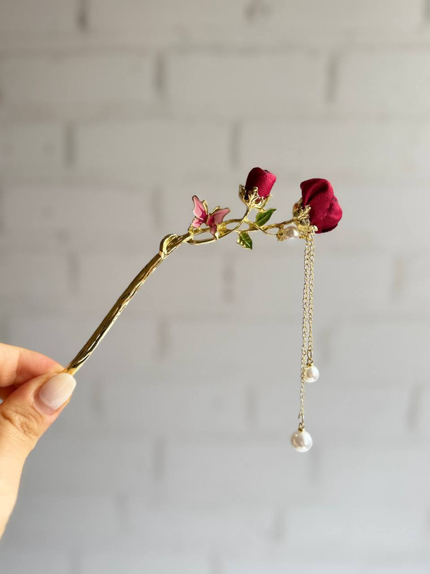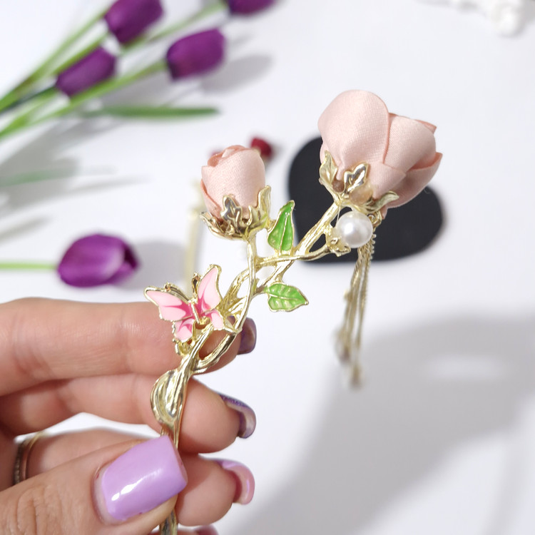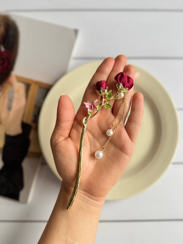 گیره مو کانزاشی گل رز پارچه ای آویز دار رنگ ثابت وارداتی