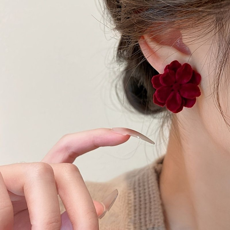 گوشواره یلدایی بسیار خاص و زیبا طرح گل رز می باشد,این گوشواره رنگ ثابت است و مخملی می باشد.قفل آن از نوع میخی،بوده و ضد حساسیت می باشد .