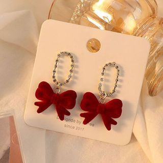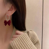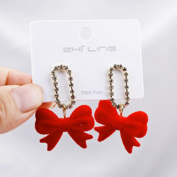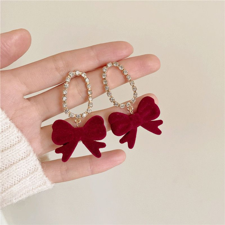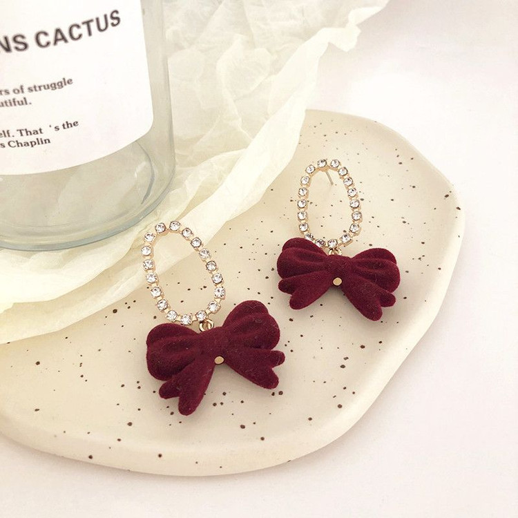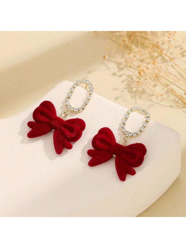 گوشواره یلدایی طرح پاپیون نگینی مخمل رنگ ثابت