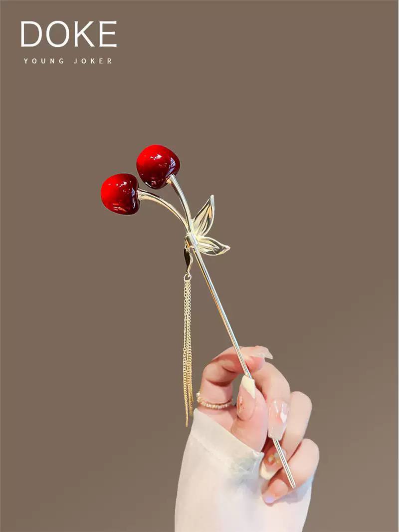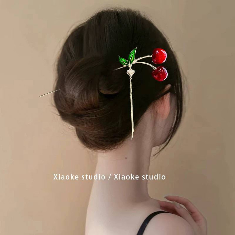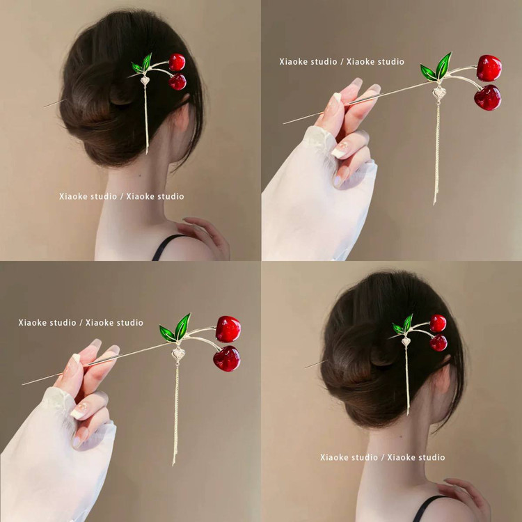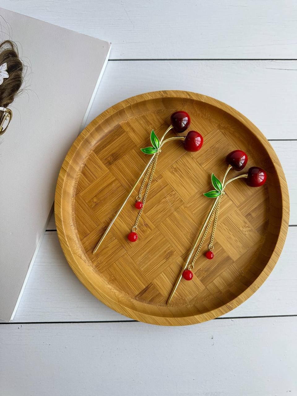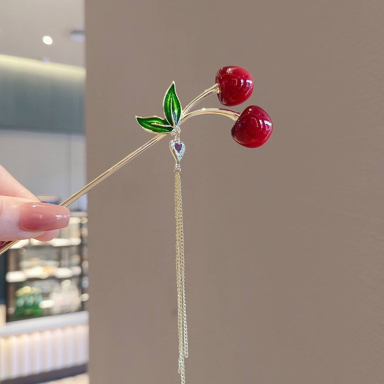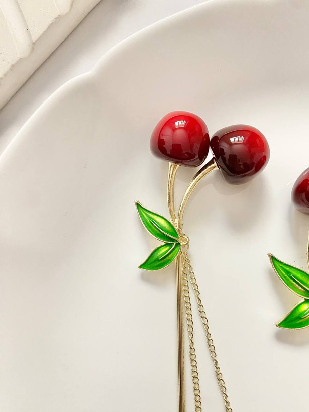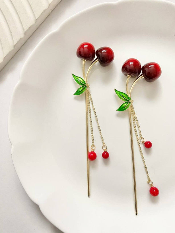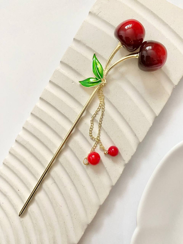 گیره مو کانزاشی فلزی طرح گیلاس رنگ ثابت وارداتی