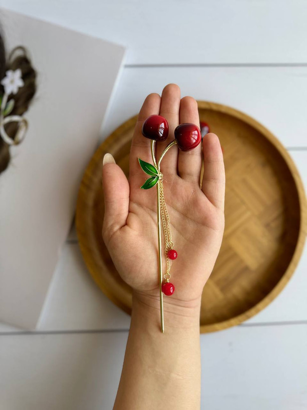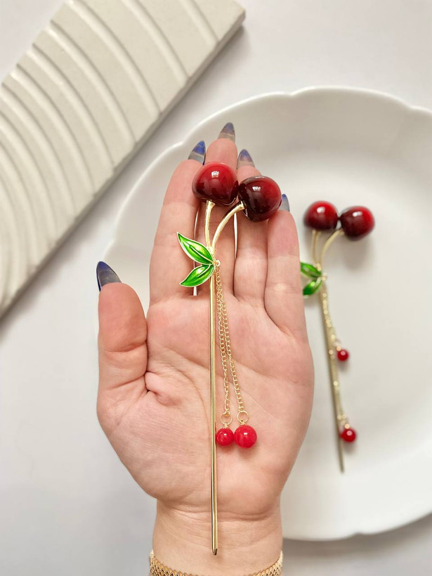 کانزاشی یا پین مو طرح گیلاس از برند محبوب zaya می باشد که کاملا رنگ آن ثابت است .کانزاشی ها جدید ترین اکسسوری های موجود در بازار هستند که جایگزین کش مو و کلیپس مو شده اند و به آسانی می توانند موها را جمع کنند .