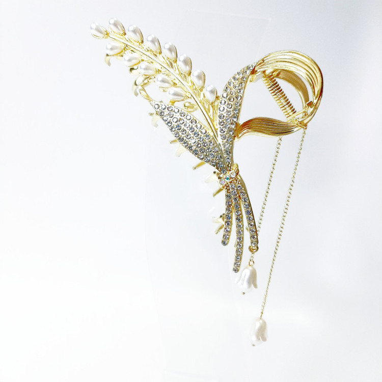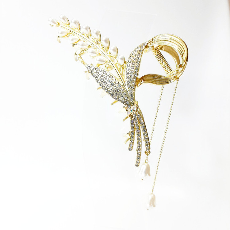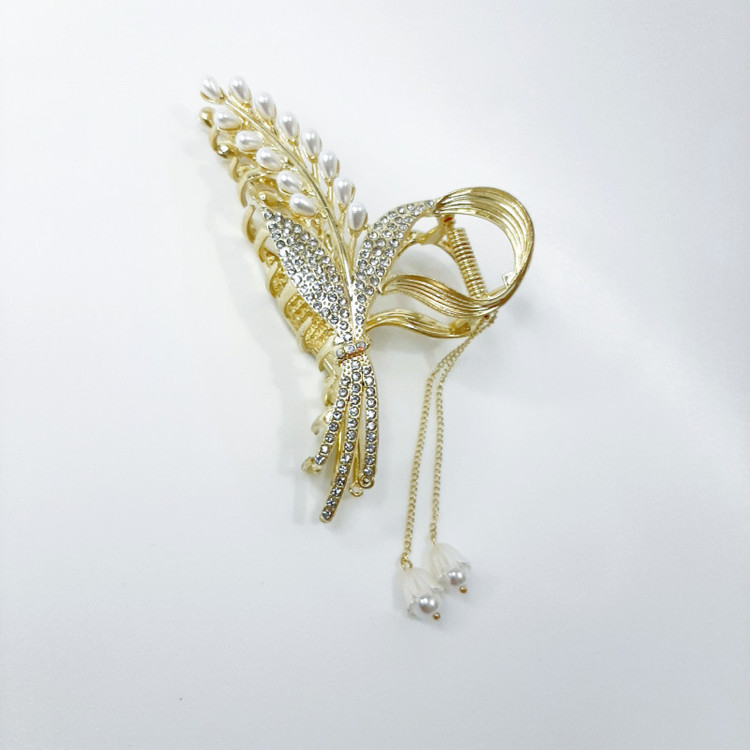 کلیپس مو زنانه مدل فلزی طرح گل گندم آویز دار