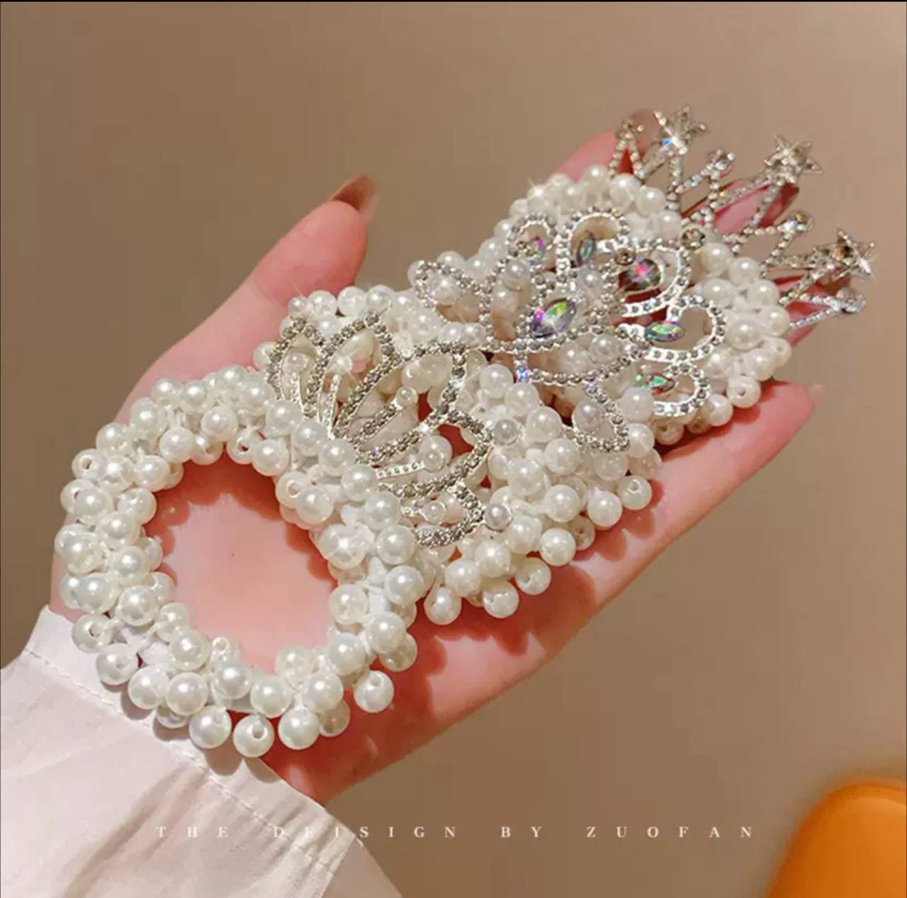 کش مو دخترانه تاج دار مرواریدی وارداتی