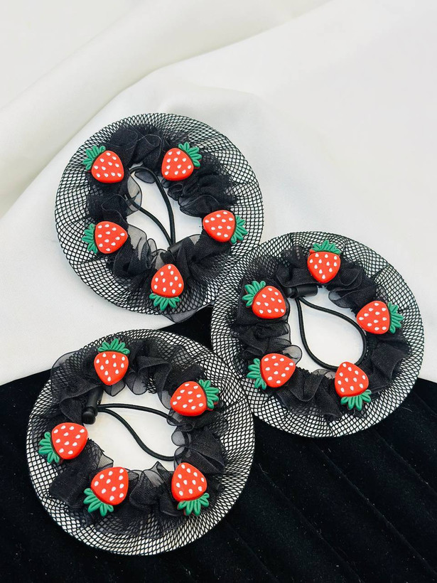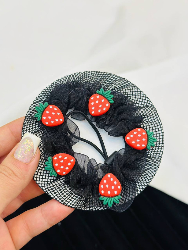 گیره توری مو طرح توت فرنگی مناسب مدل مو گوجه ای
