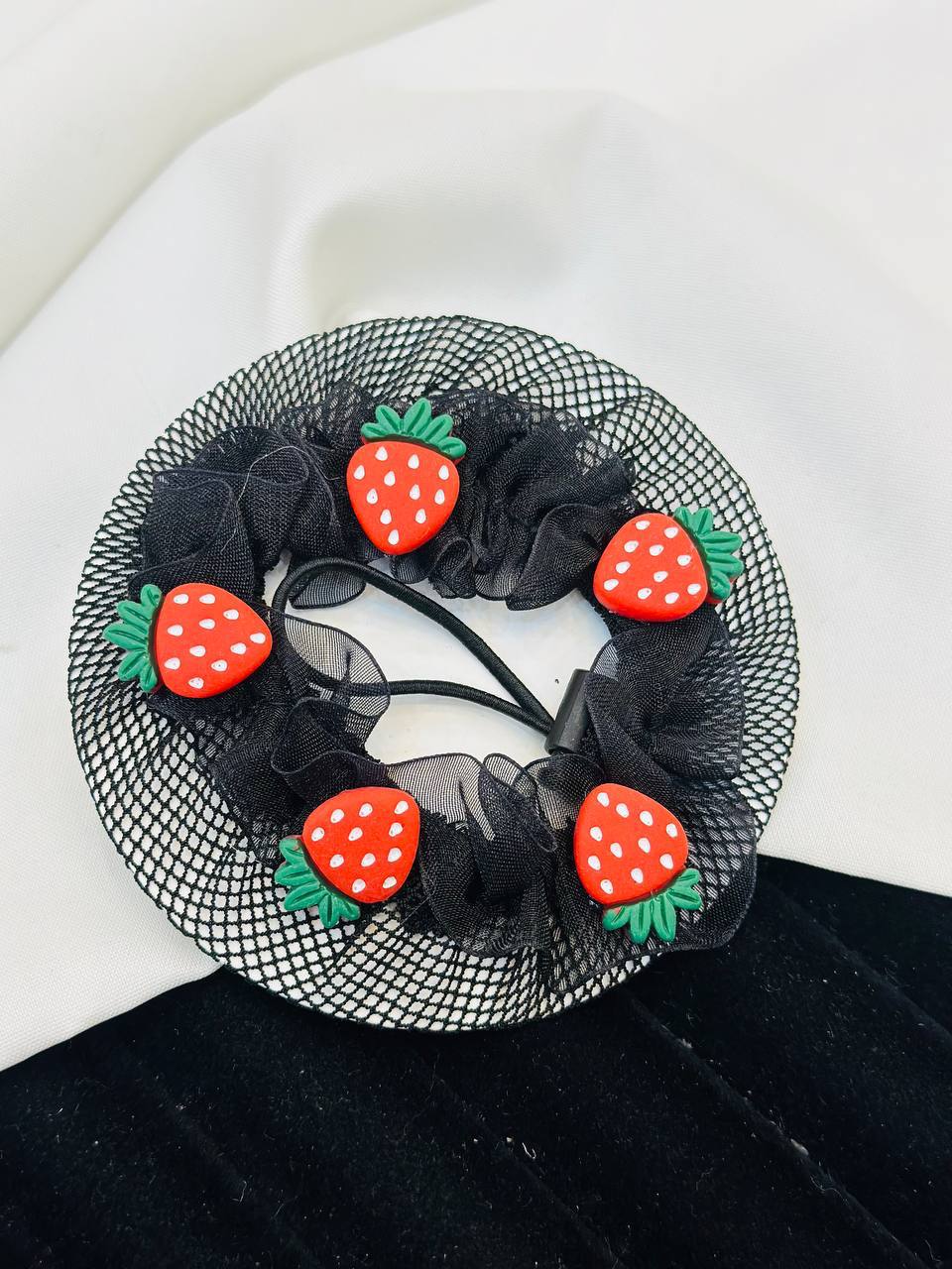 گیره توری مو طرح توت فرنگی مناسب مدل مو گوجه ای