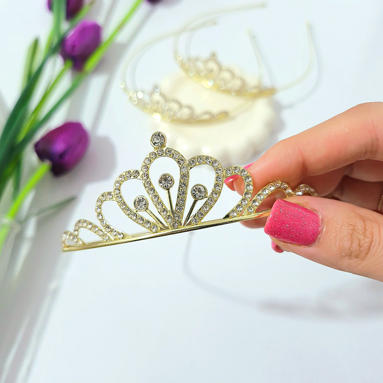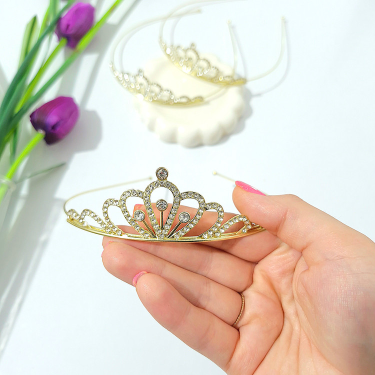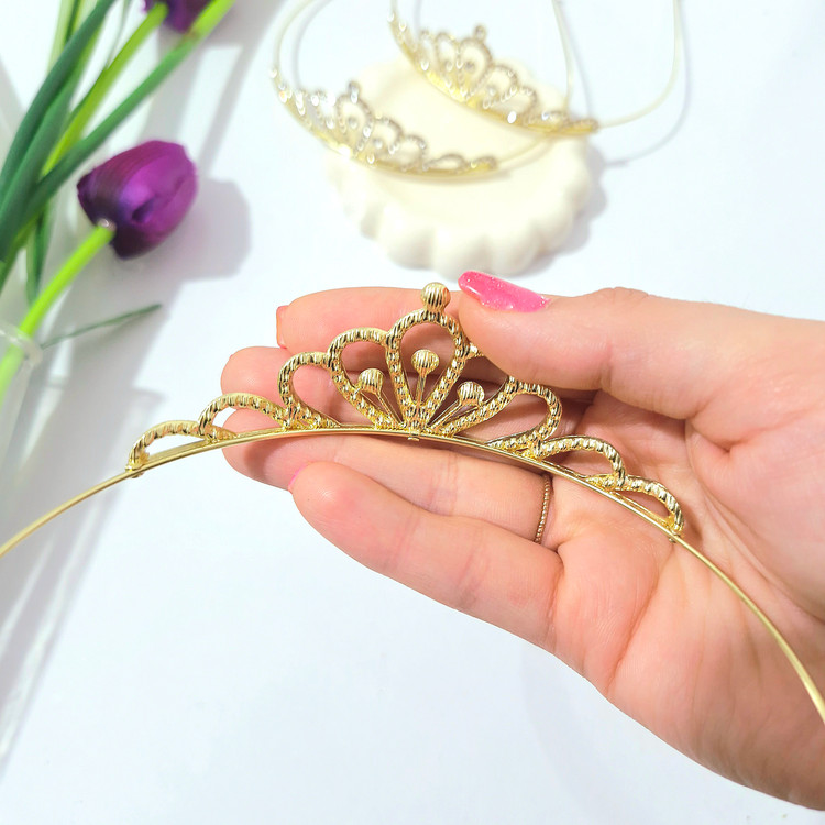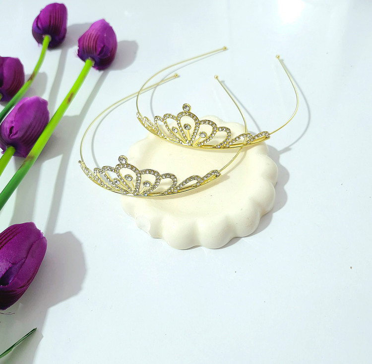 تاج عروس بچگانه از جنس فلز وبه رنگ طلایی براق می باشد .