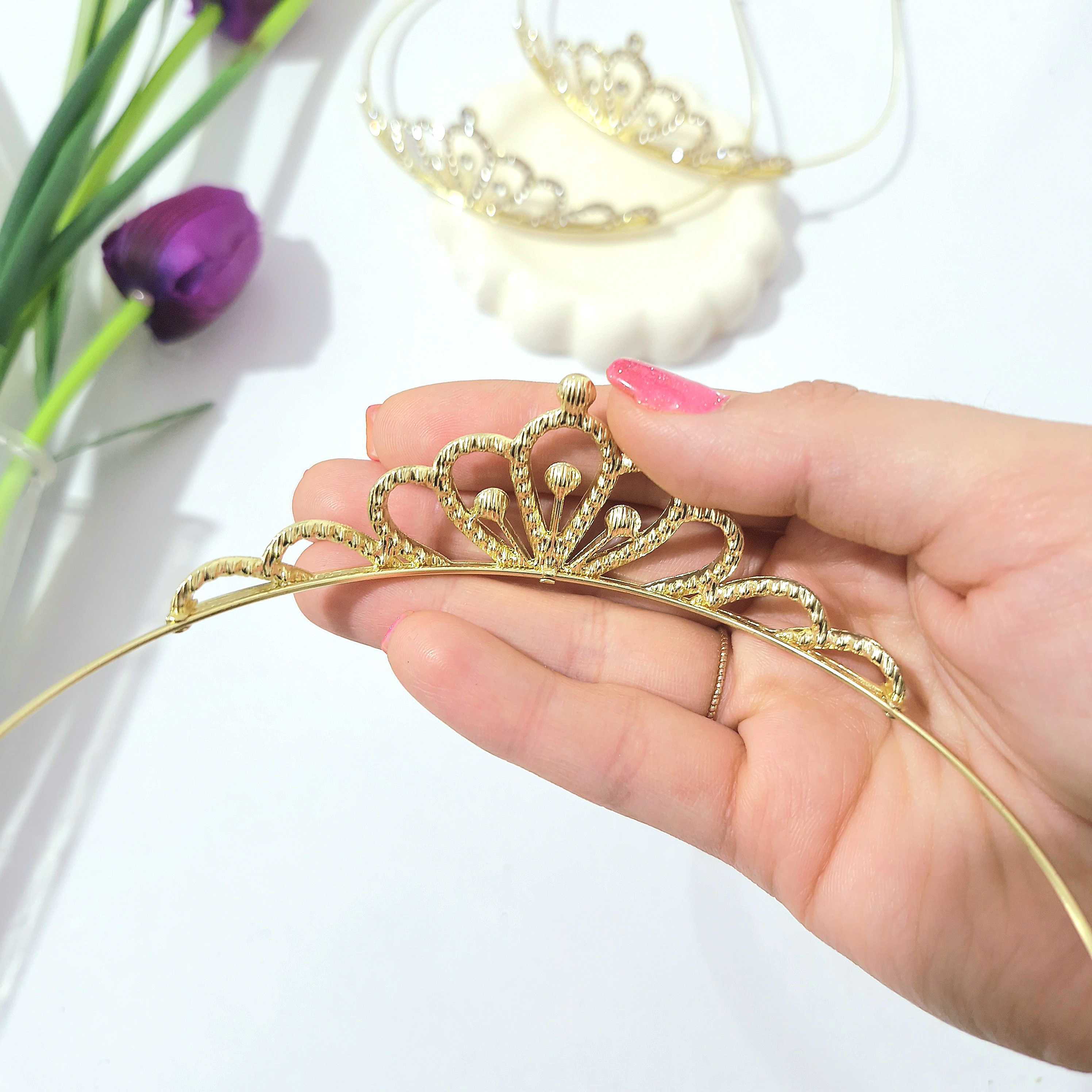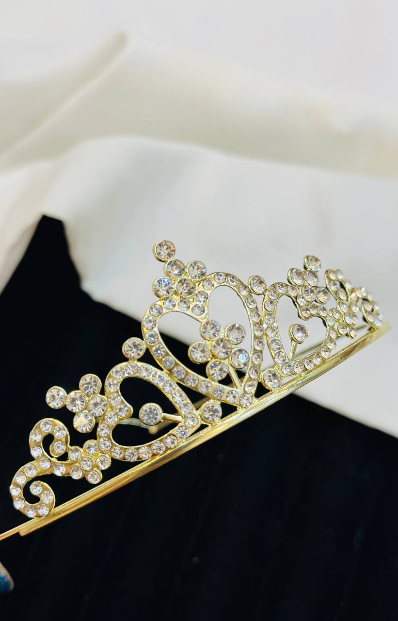 تاج عروس بچگانه از جنس فلز وبه رنگ طلایی براق می باشد .