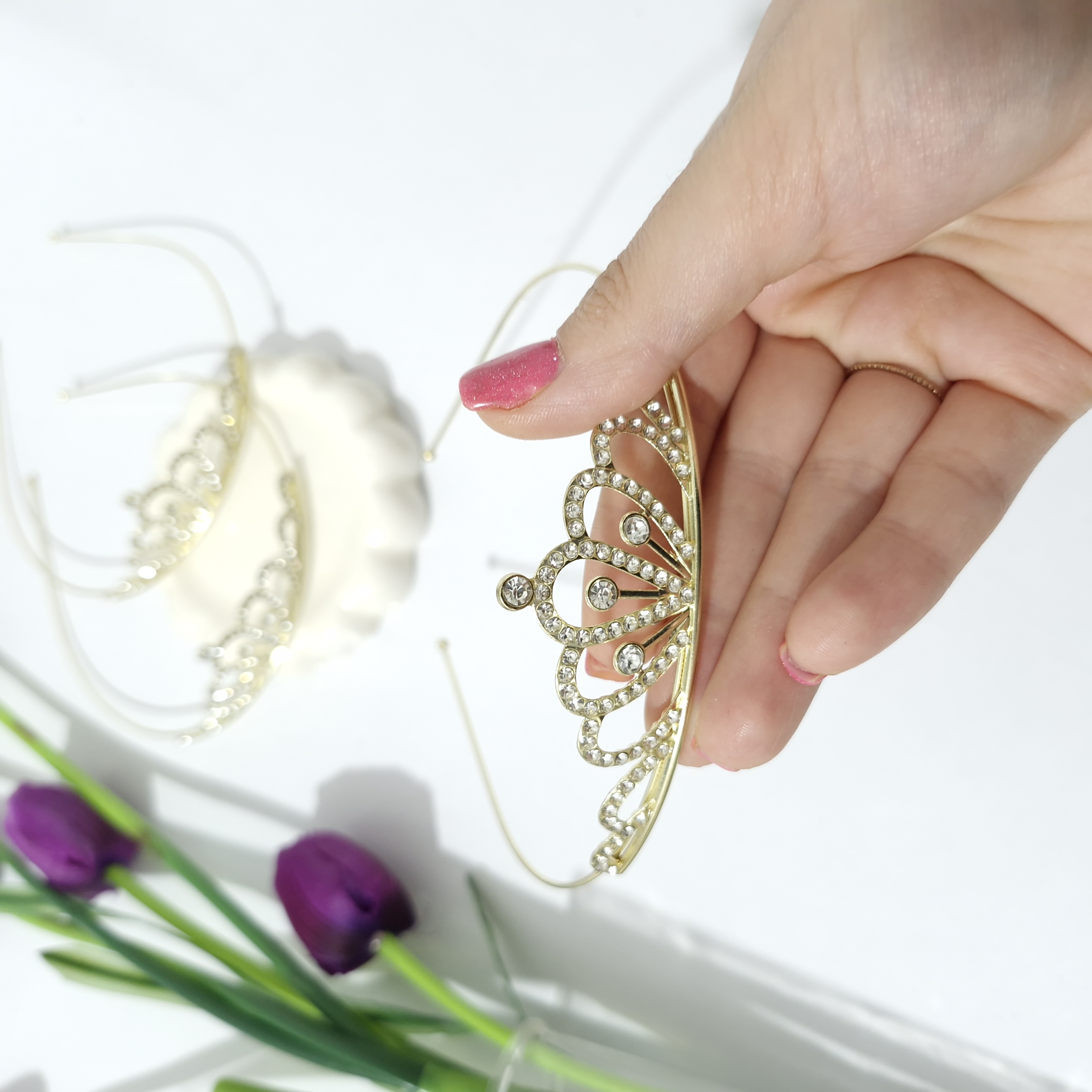 تاج فلزی دخترانه نگین دار سواروسکی و رنگ ثابت