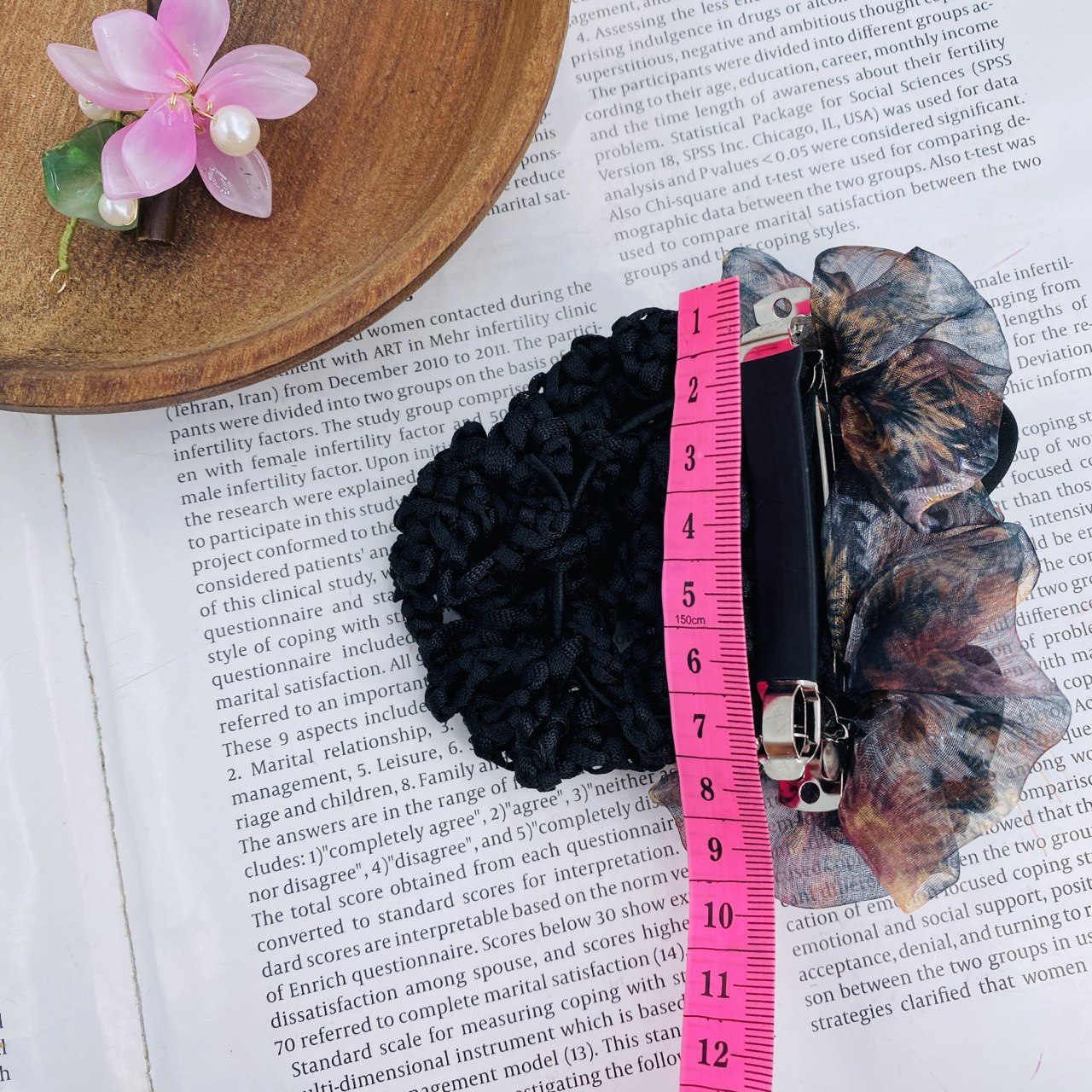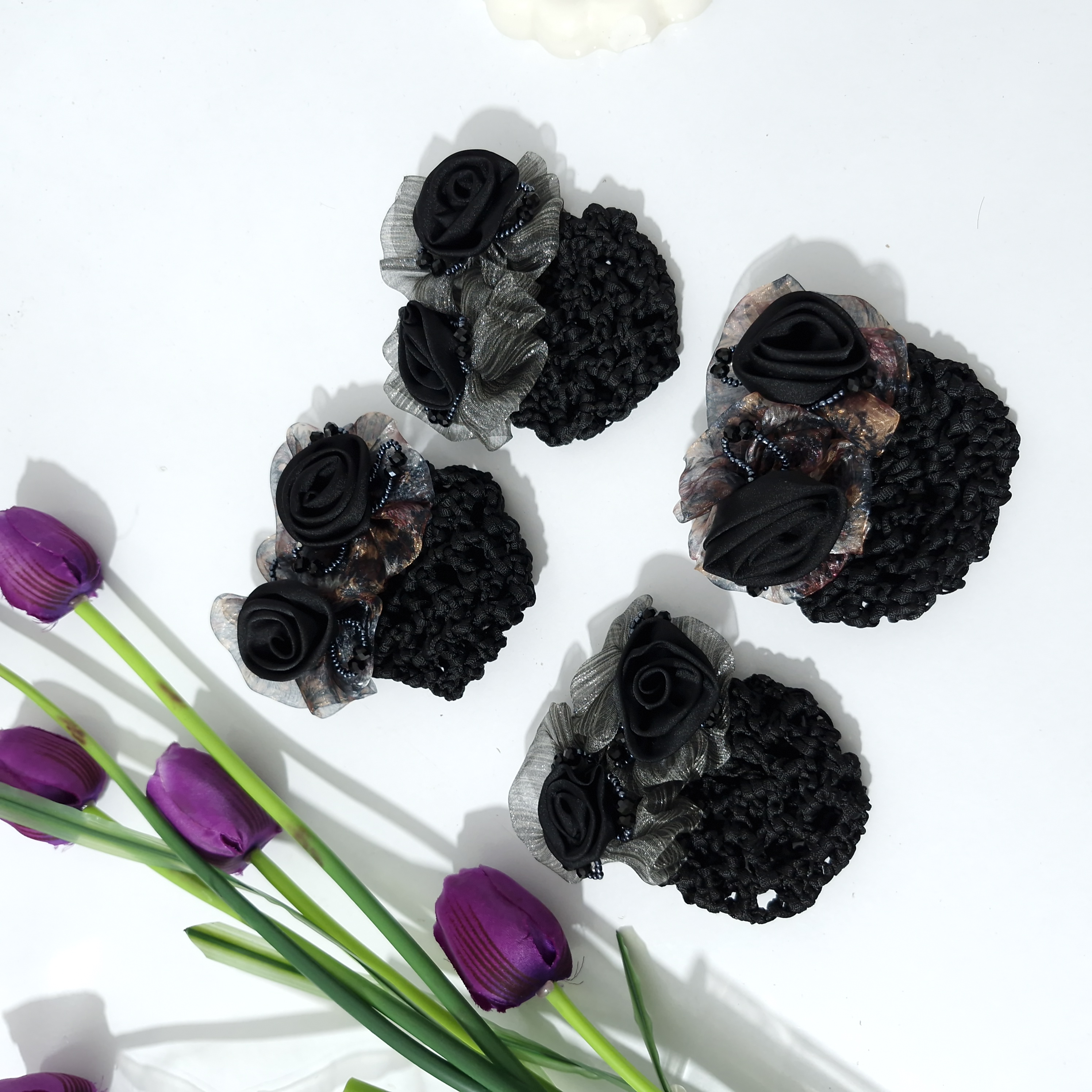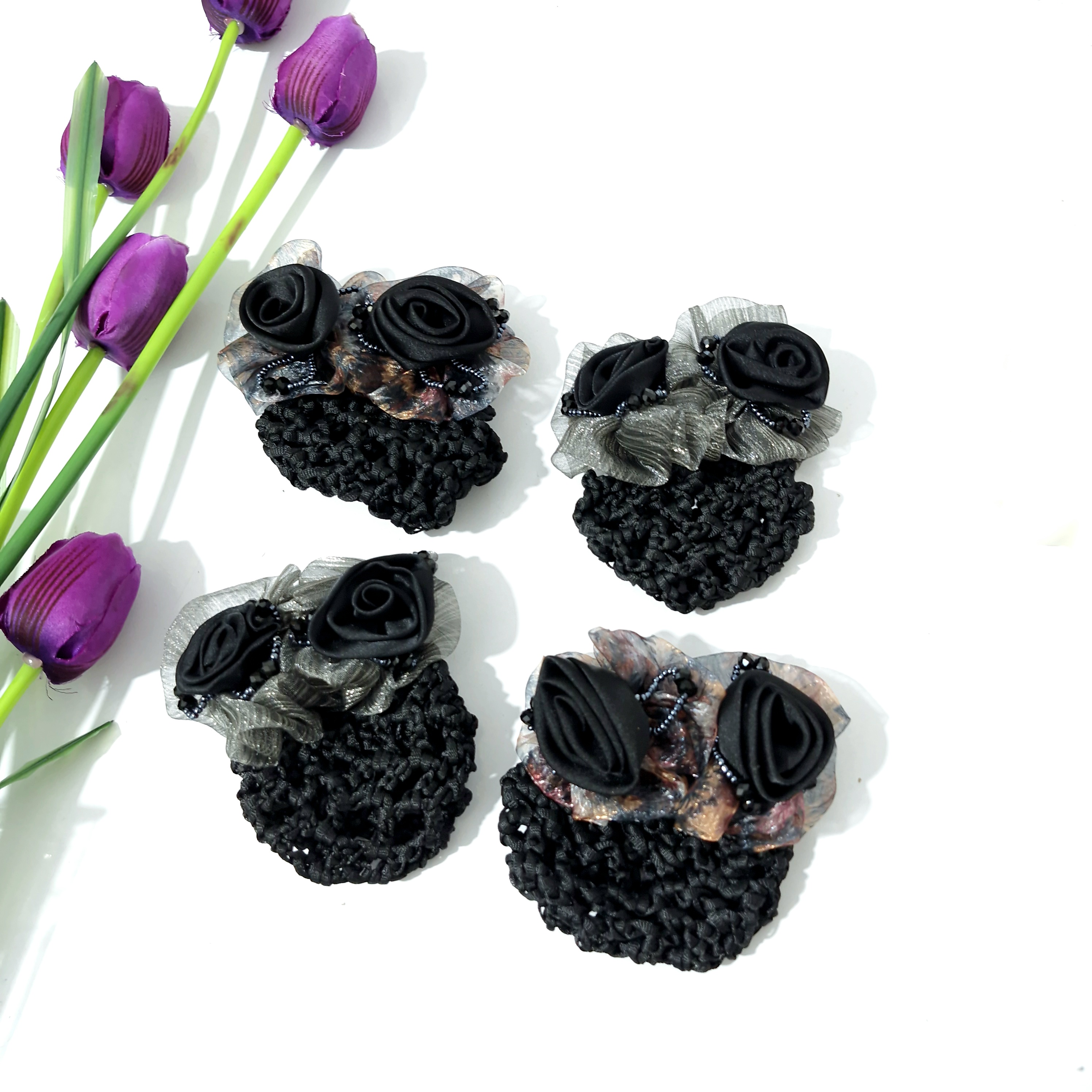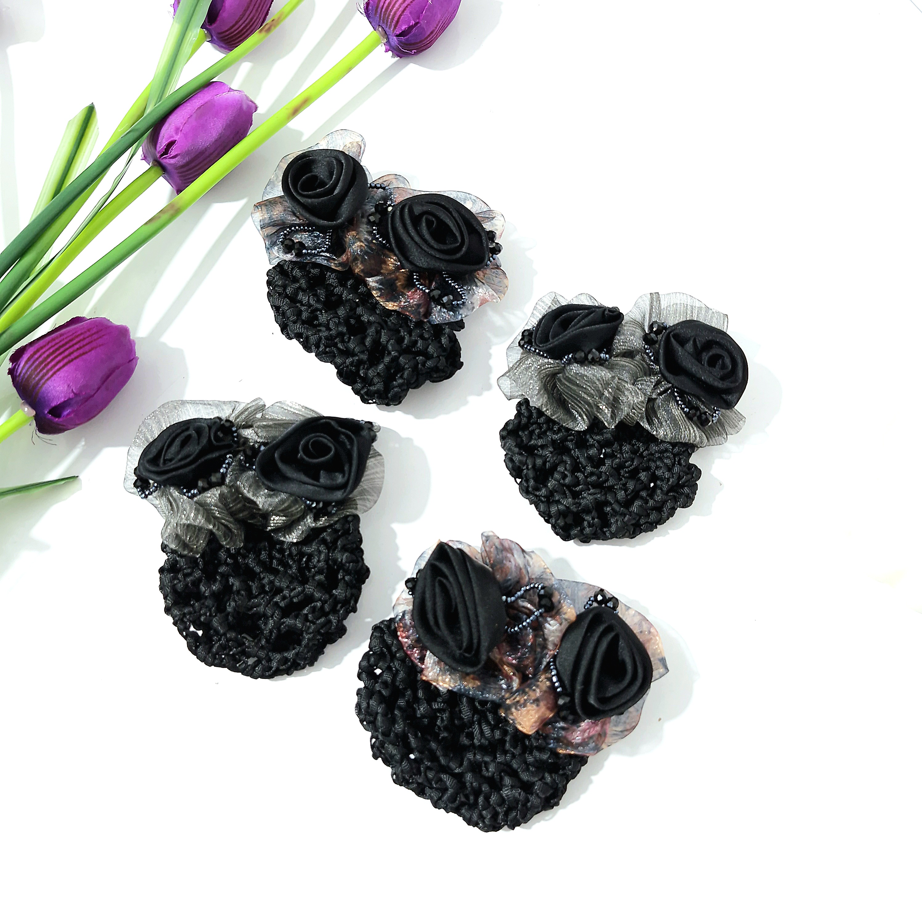 گیره مو فرانسوی کیسه دار طرح گل