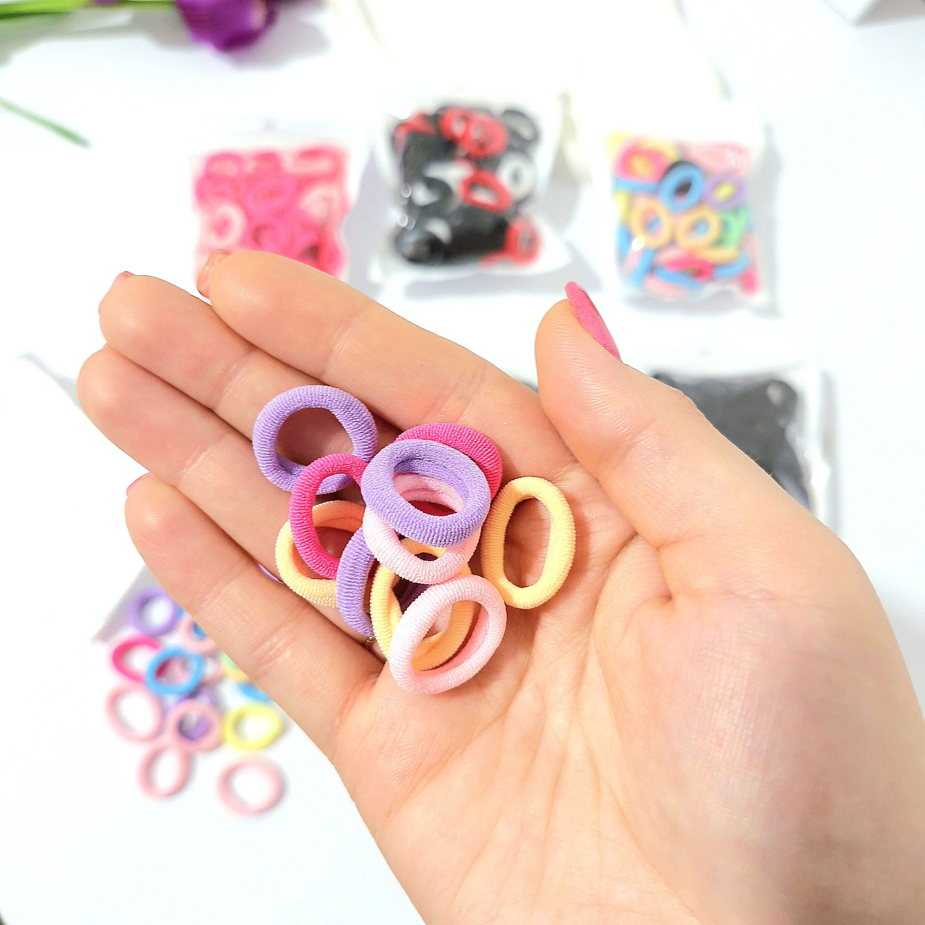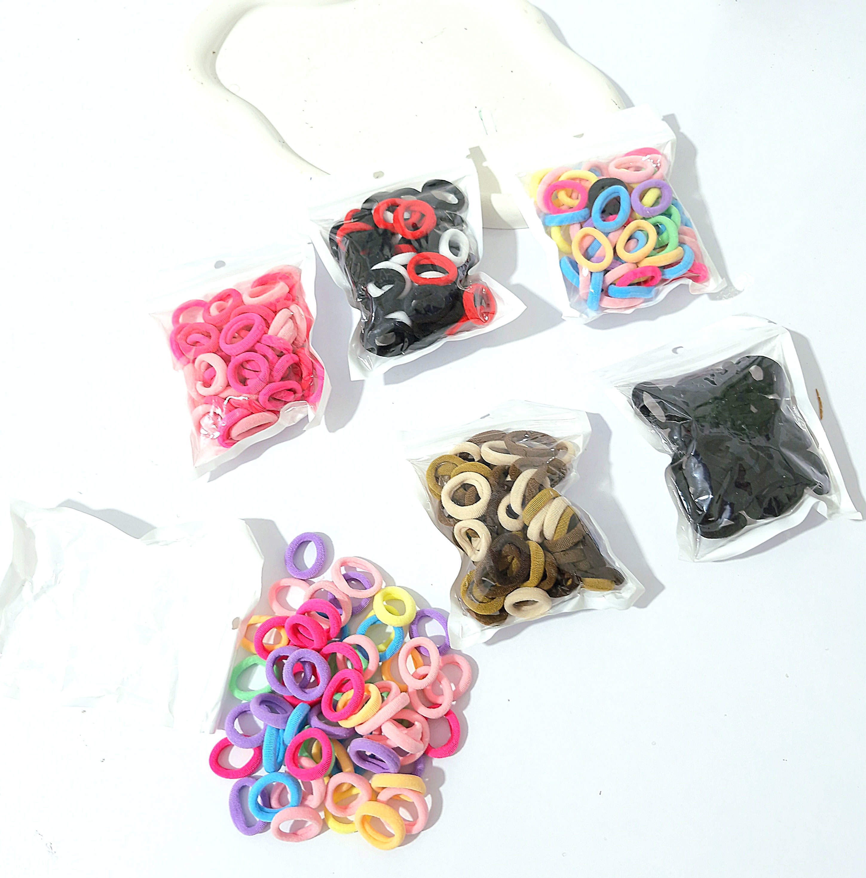 هرپک شامل 50 عددی کش مو جنس حوله ای می باشد که سایز متوسط هستند و برای بستن موها،بستن بافت و.... به کار می روند .هر پک دارای یک کیف طلقی زیپ دار می باشد که از گم شدن و بهم ریختگی کش ها جلوگیری می کند .